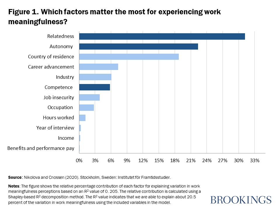 布鲁金斯学会(Brookings Institute)本周发布了从过去十五年间开展的几项调查中收集的结果,以评估机器人技术对工作”意义”的影响。该智库是这样定义这个公认的抽象概念的: