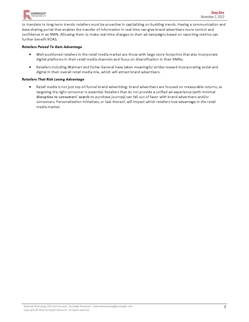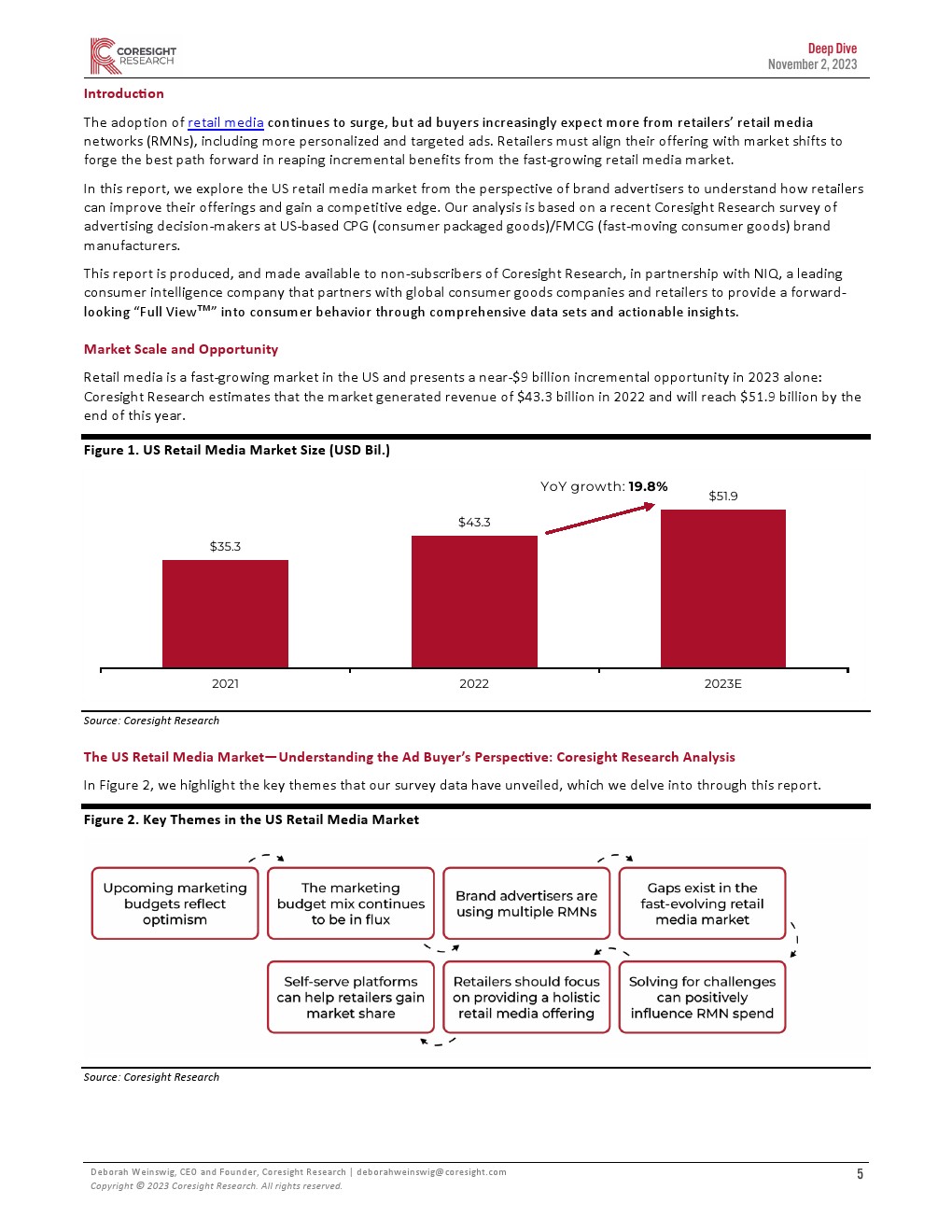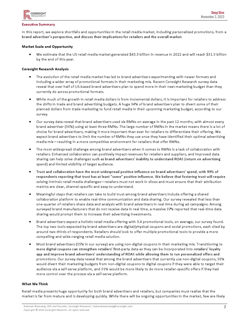 在RMN方面,品牌广告主面临的最普遍挑战是缺乏与零售商的合作。加强合作可以对零售商和供应商的收入产生积极影响,改进数据共享可以帮助解决品牌广告主无法了解广告支出回报率(ROAS)和目标受众可见性有限等挑战。