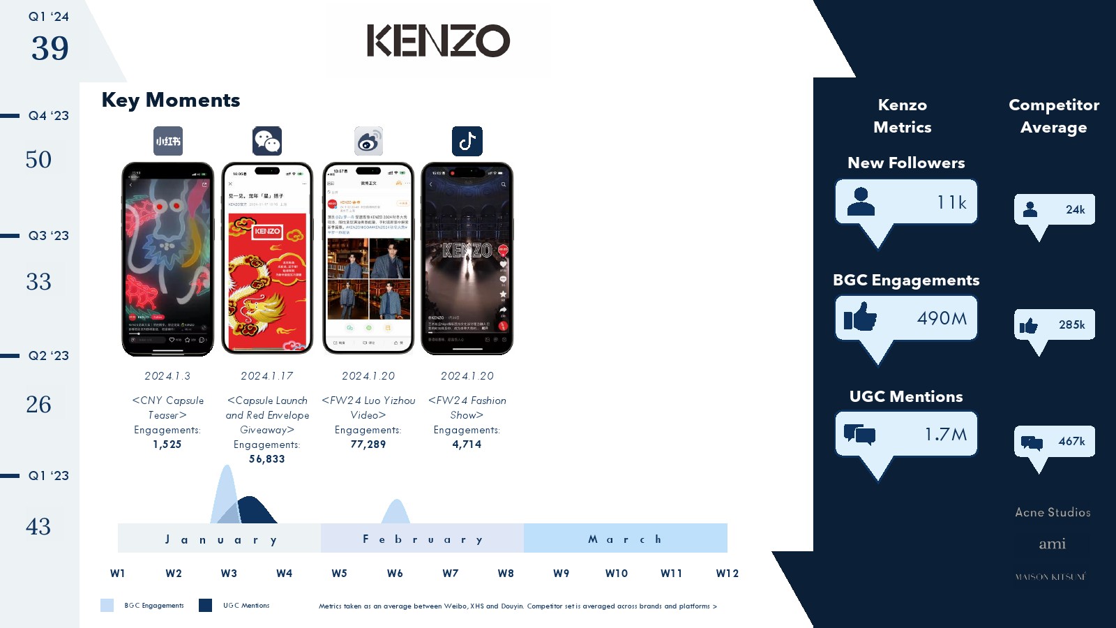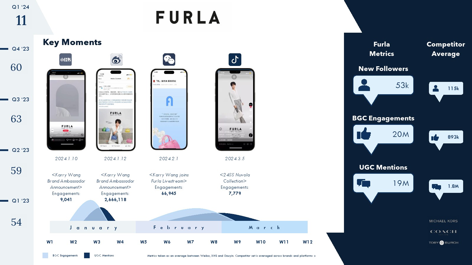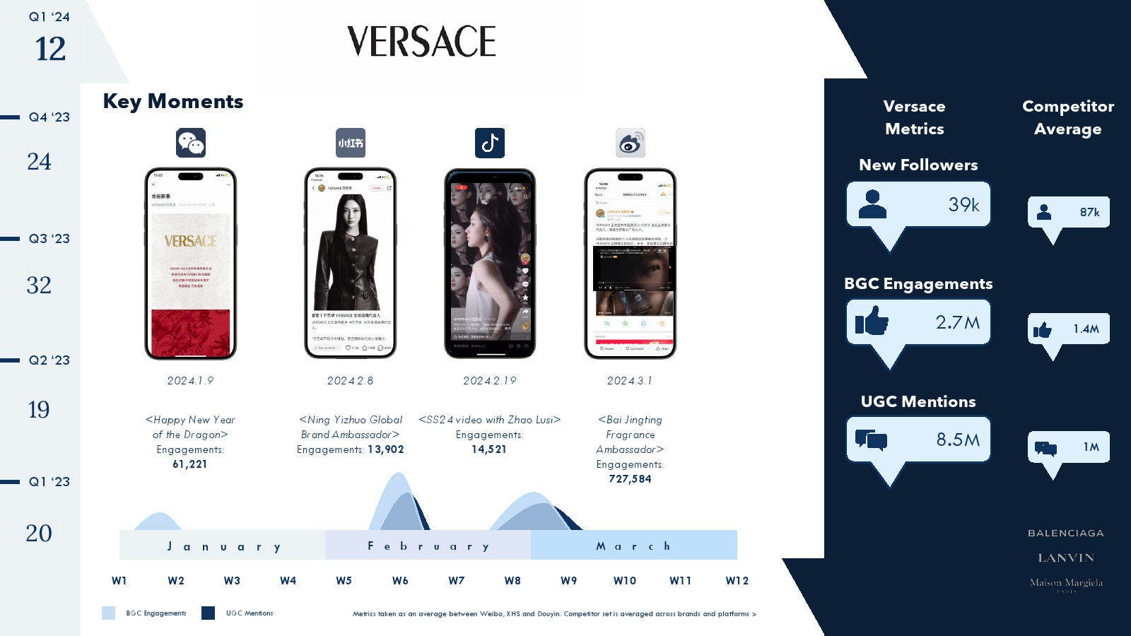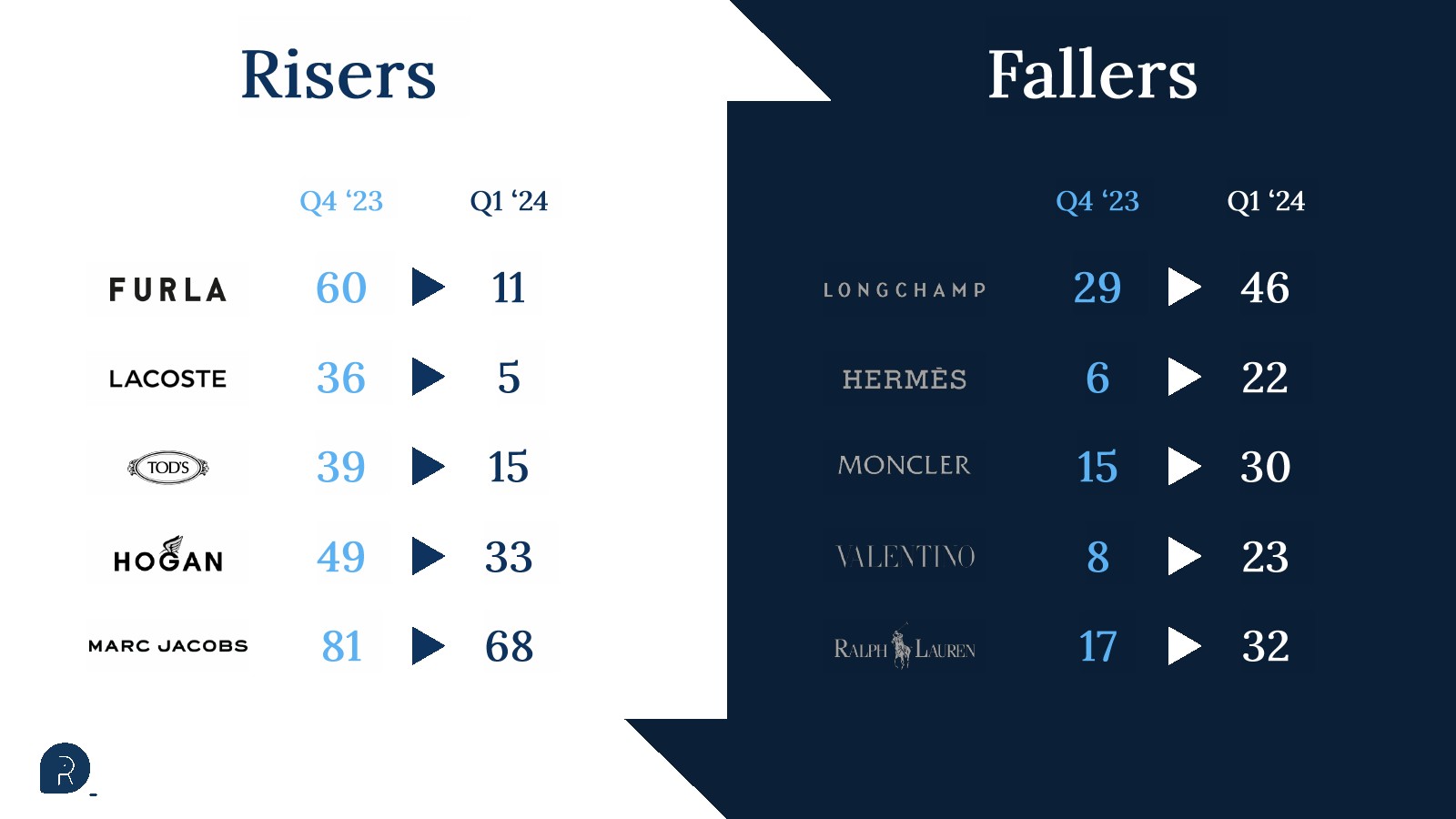 社交参与度全面提升。第一季度,提及奢侈品牌的用户生成内容同比增长30%。与2023年第四季度相比,第一季度的参与度有所下降。