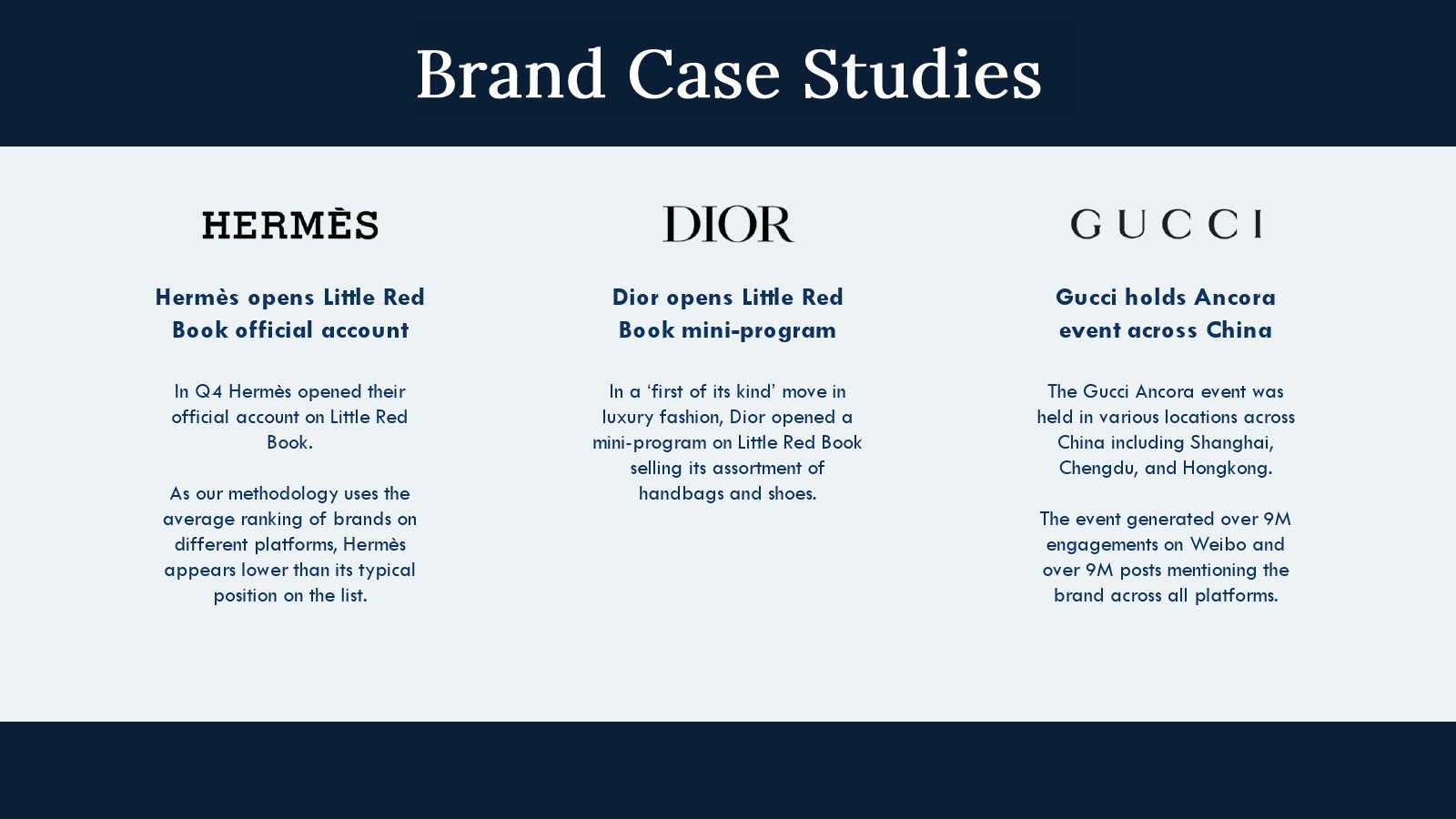 爱马仕开通小红书公众号。2023年第四季度,爱马仕在小红皮书上开设了自己的官方账号。由于我们的方法使用的是品牌在不同平台上的平均排名,爱马仕在榜单上的排名似乎低于其通常的位置。