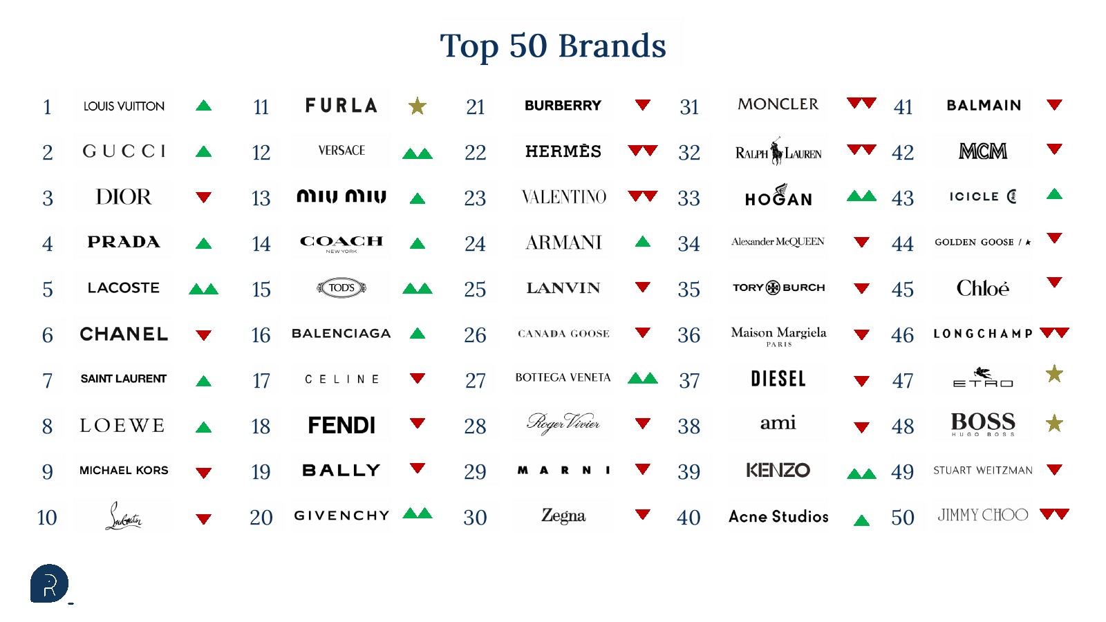 小品牌的数量也有所增加,Lacoste、Loewe、Furla、AcneStudios和Etro的活动都大幅增加,进一步凸显了中国市场对众多品牌的重要性。