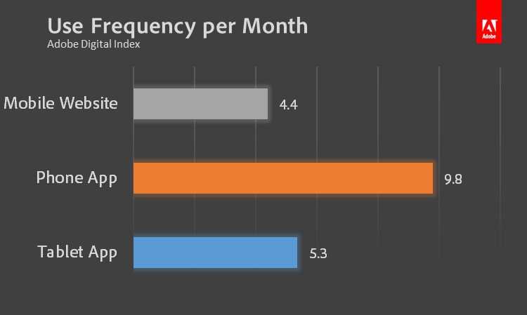 营销者总在犹豫不知道是该把宝押在移动APP还是移动网页上面,而来自Adobe Digital Index的数据给出了一些答案,使用移动APP的用户相比访问移动站点的用户对品牌更加忠诚。