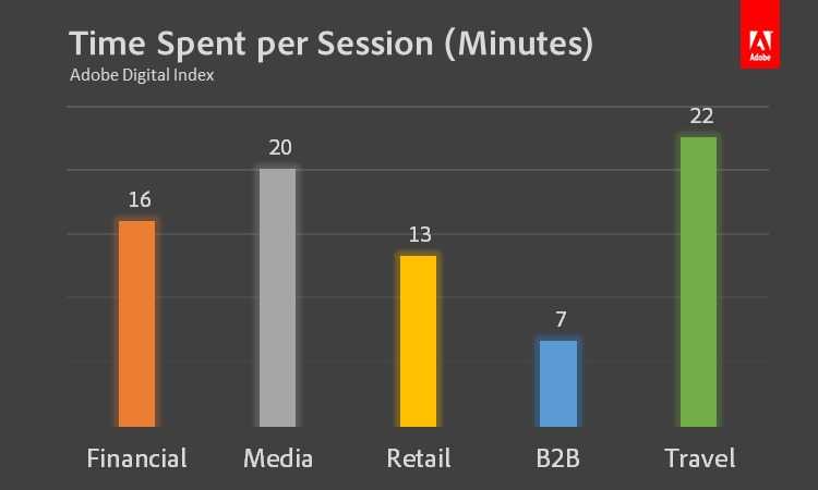 媒体应用也同样拥有较长的会话时长,数字杂志尤甚。