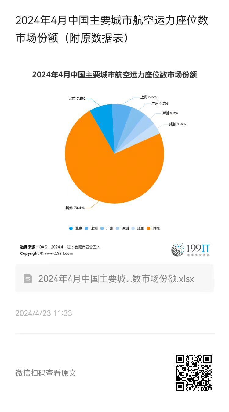 - 2024年10月中国主要城市航空运力座位数市场份额(附原数据表)