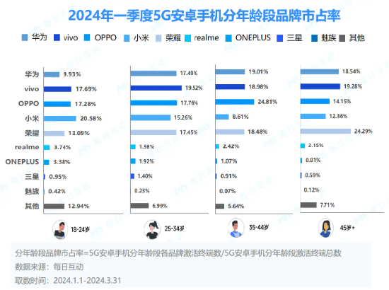 荣耀系列领衔 45 + 市场,OV 称霸 25-44 岁中坚人群