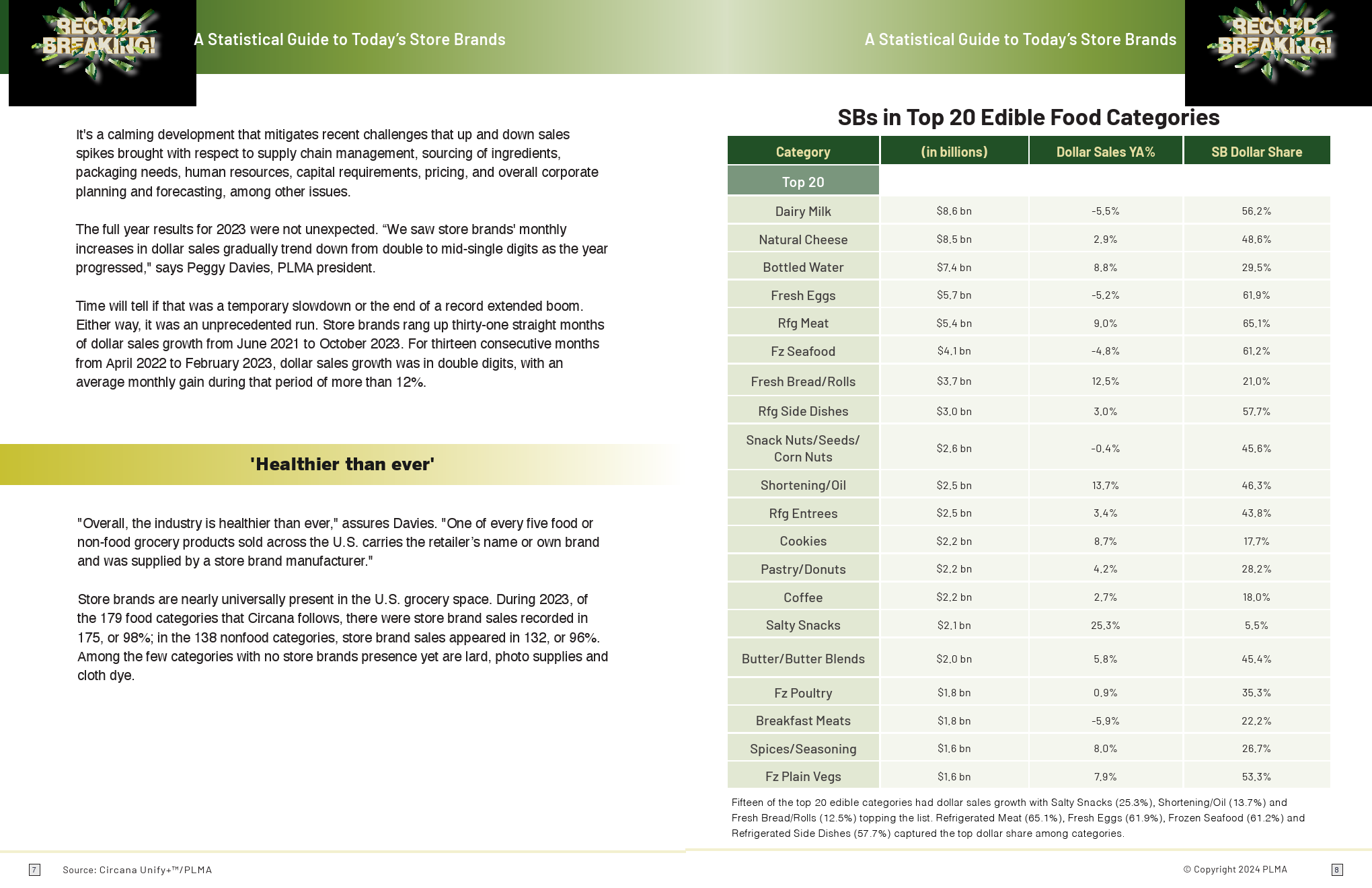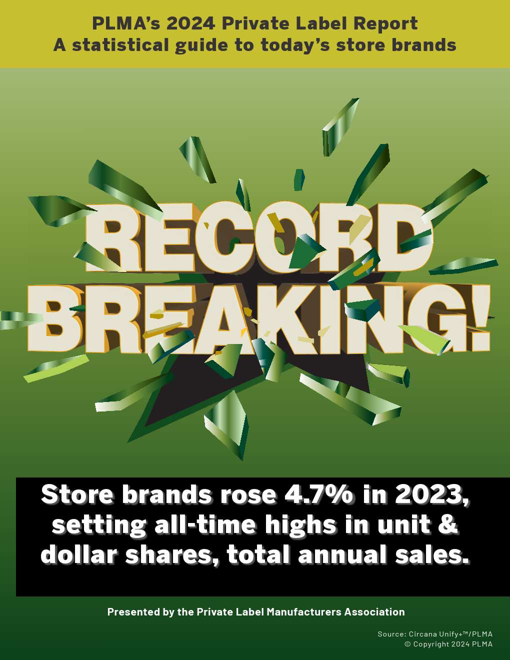 美国自有品牌制造商协会(Private Label Manufacturers Association)基于Circana数据发布的一份报告显示,对自有品牌来说,这是一个不错的年份,在销量和价格份额以及年度总销售额方面都创下了新高。商店品牌销售额增长了4.7%,超过了全国品牌(3.4%)的可比增长,达到近2363亿美元。