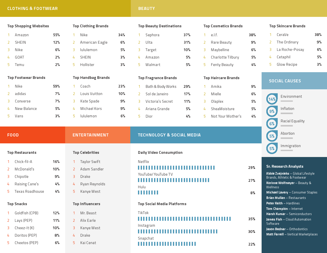 Chick-fil-A仍然是最受欢迎的餐厅(16%),麦当劳(McDonald ‘s)(10%)从去年秋季的第三名上升至第二名。