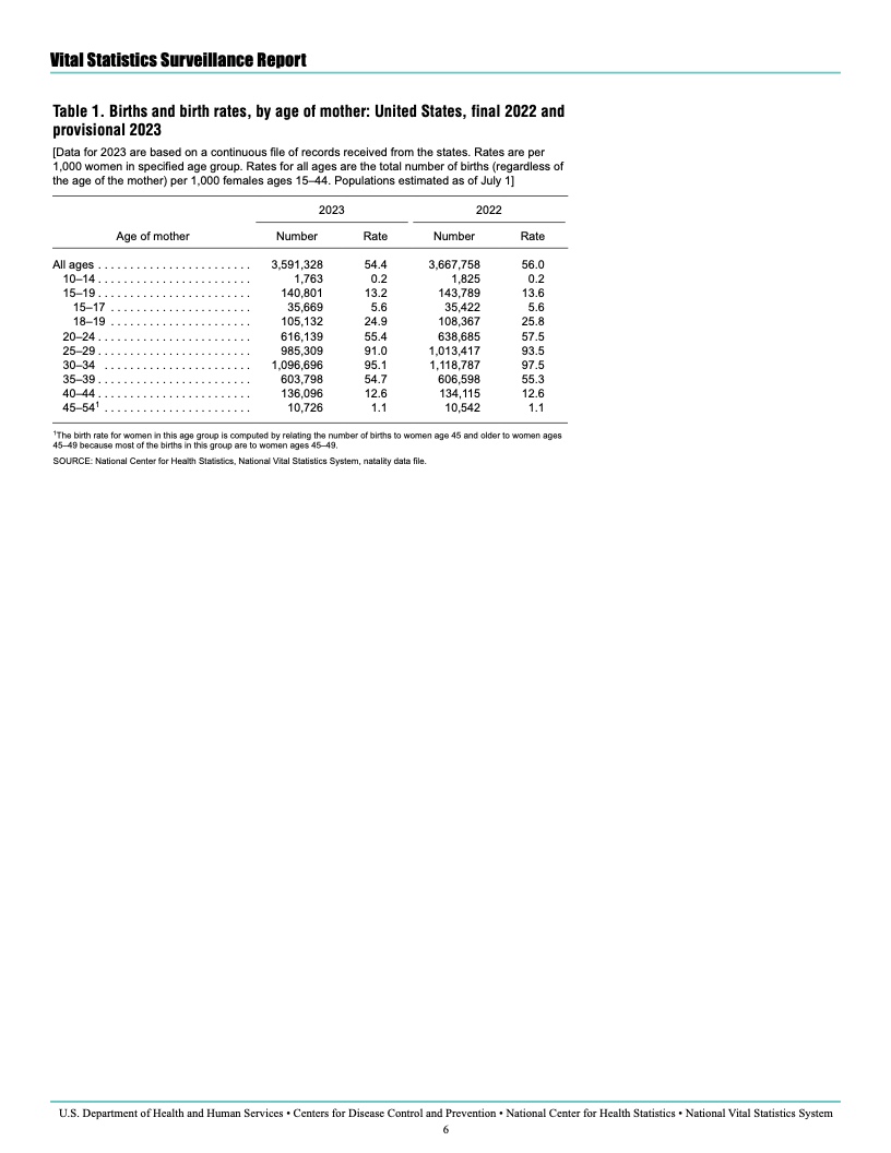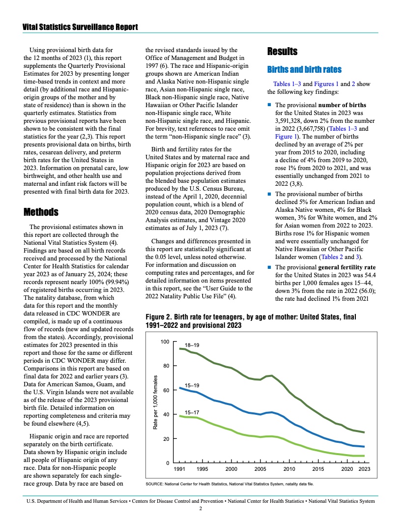 2023年美国的初步出生人数为3,591,328,比2022年下降了2%。