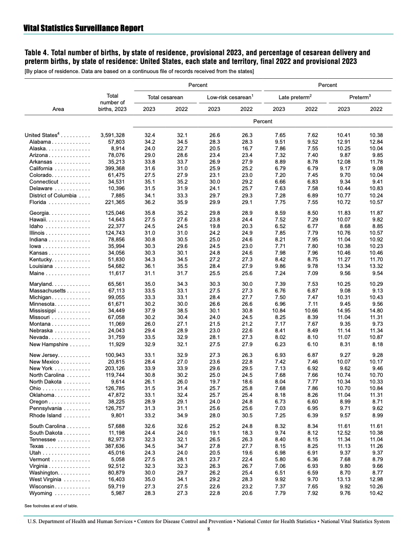 2023年的剖宫产率上升至32.4%,比2022年的32.1%有所增加,这是连续第四年上升。