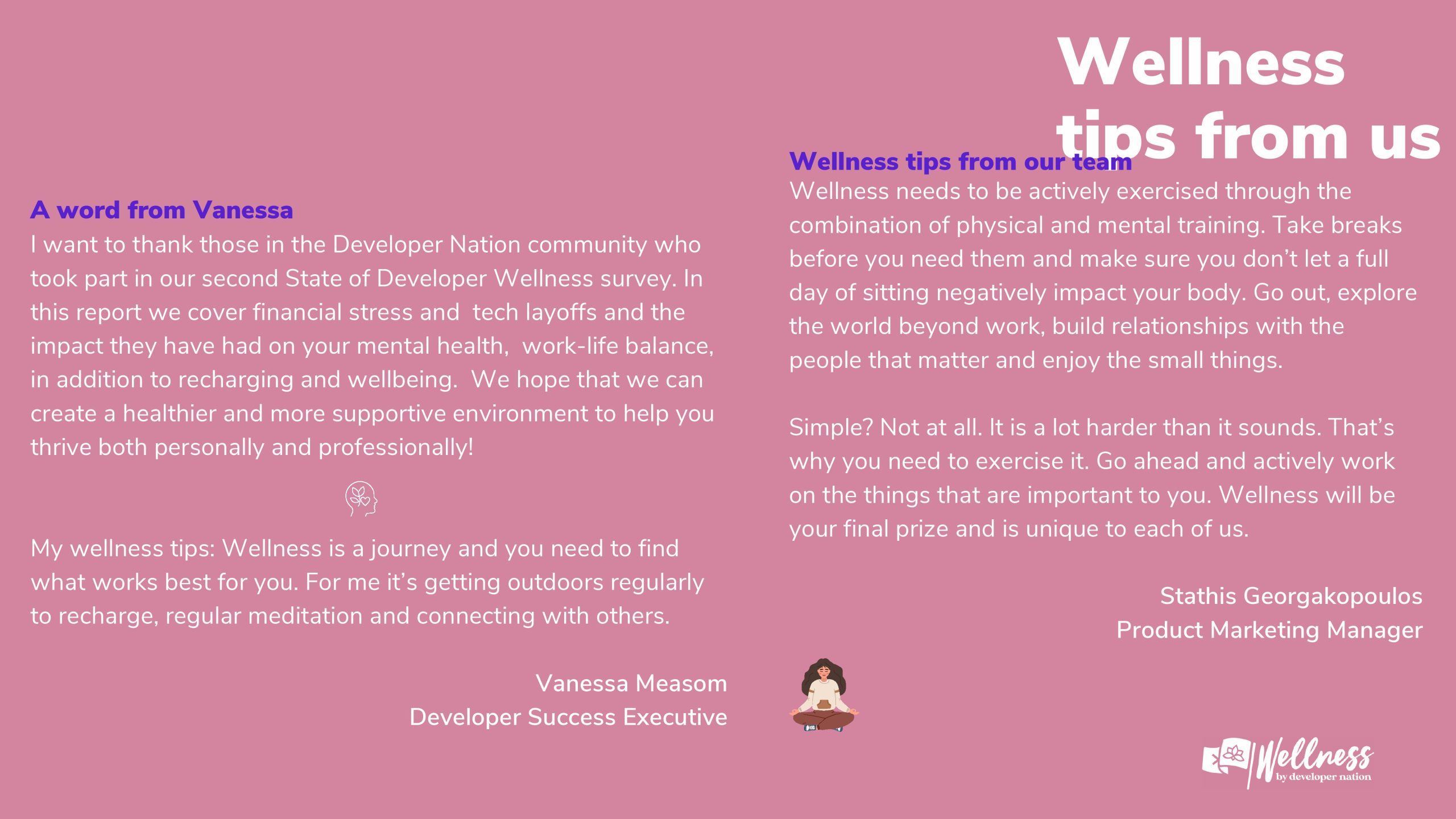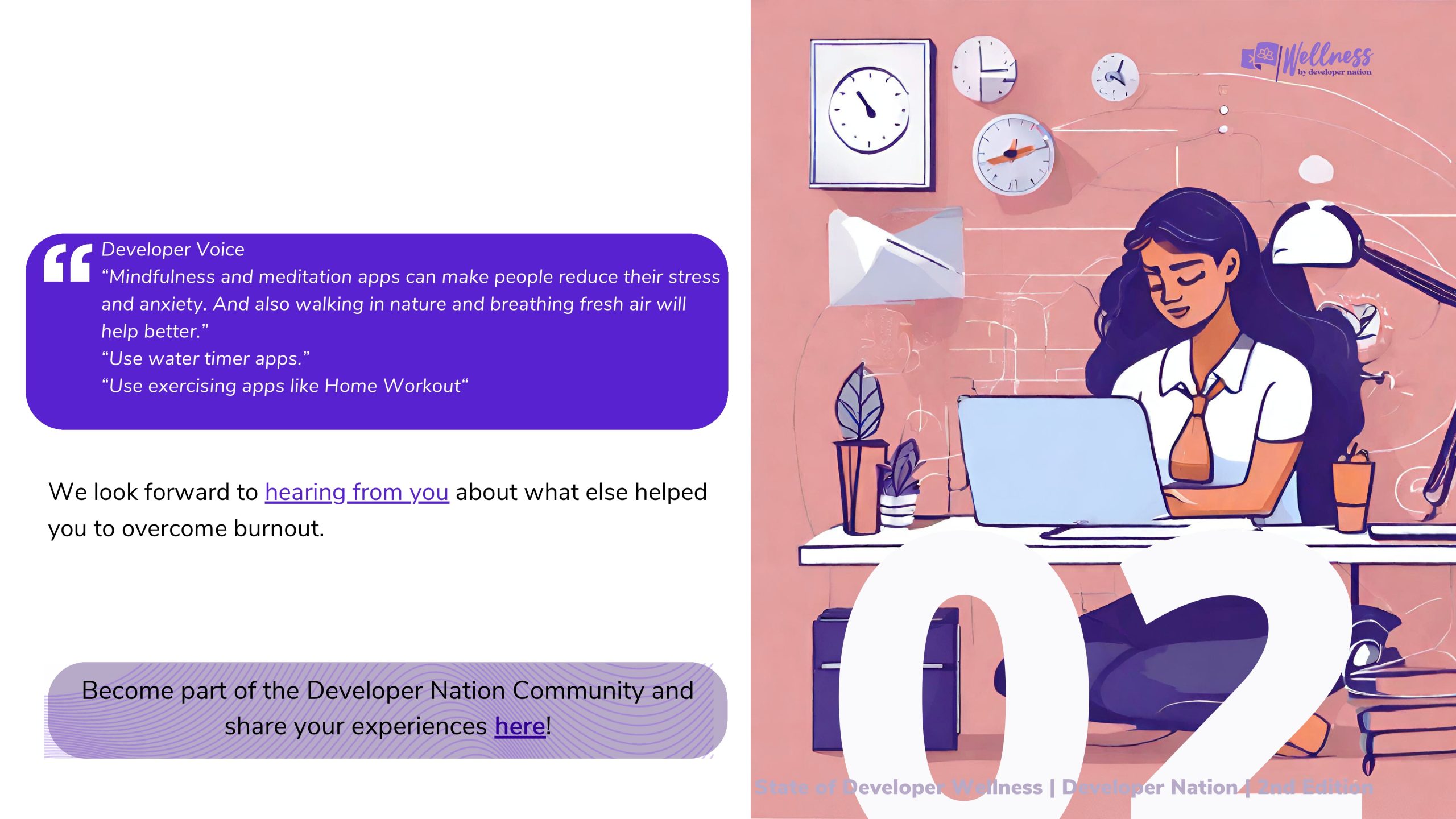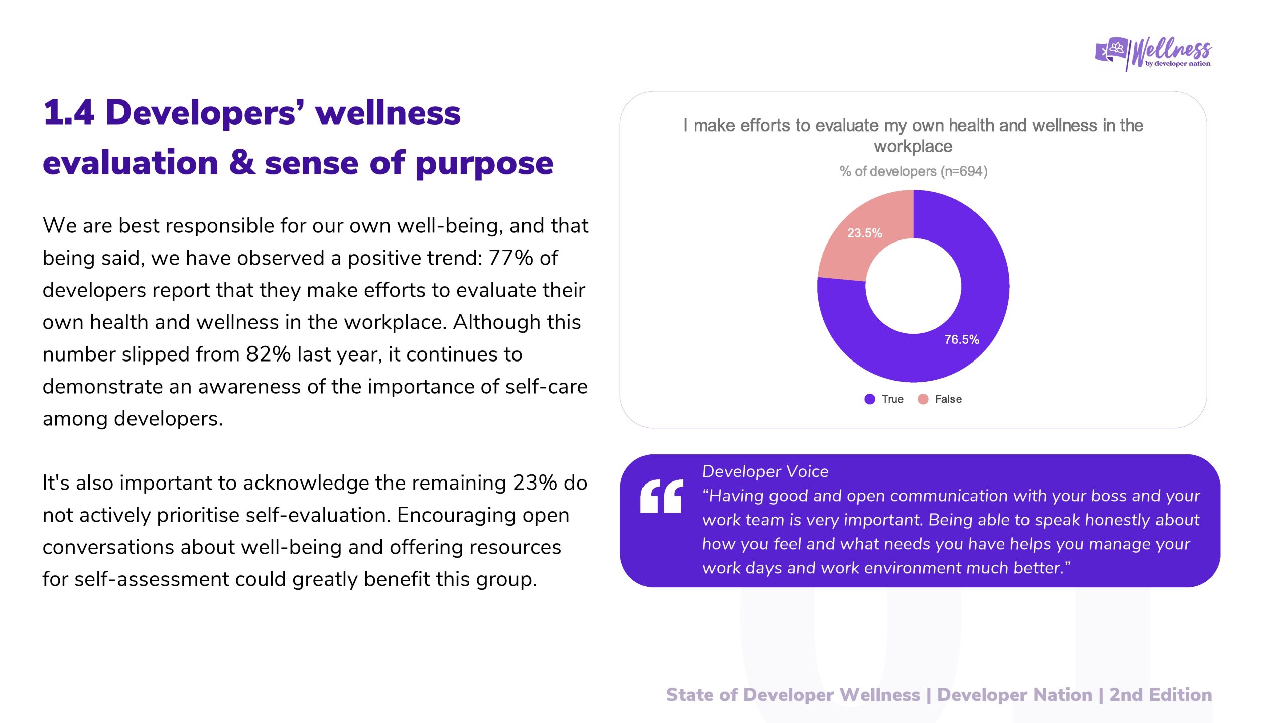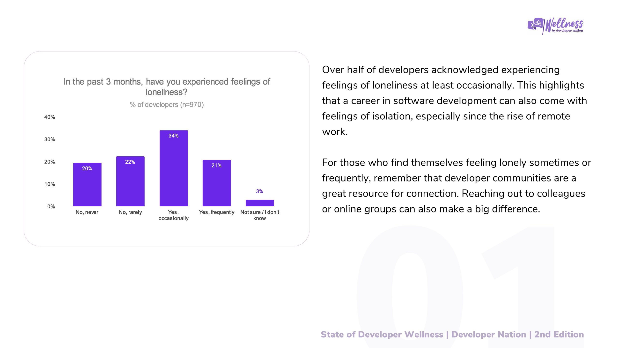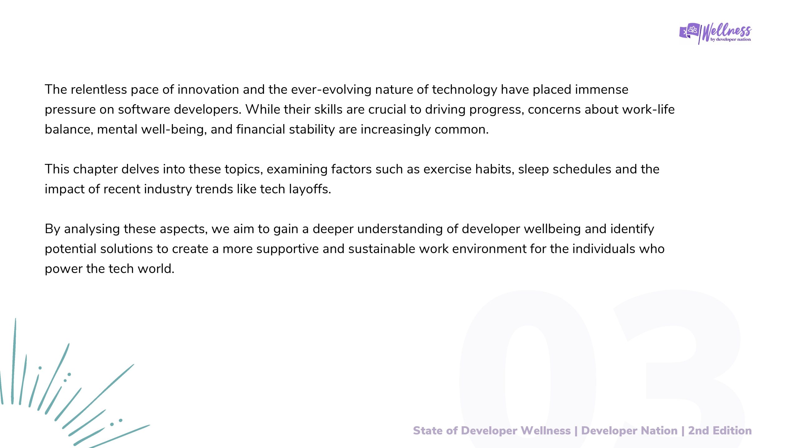 2023年Developer Nation进行了第一次开发者健康调查,目的是更好地了解开发者的健康和快乐水平。去年的报告引发了关于开发者社区幸福感的重要讨论,揭示了开发者在职业生涯中面临的挑战。