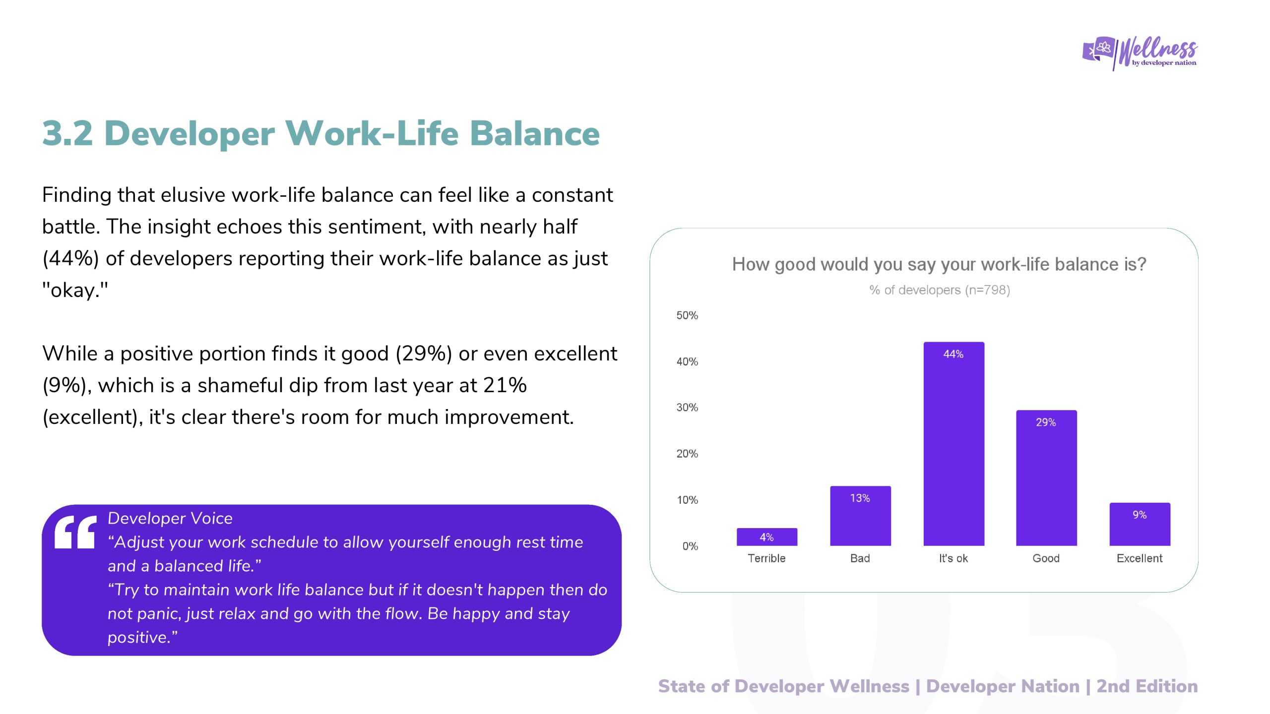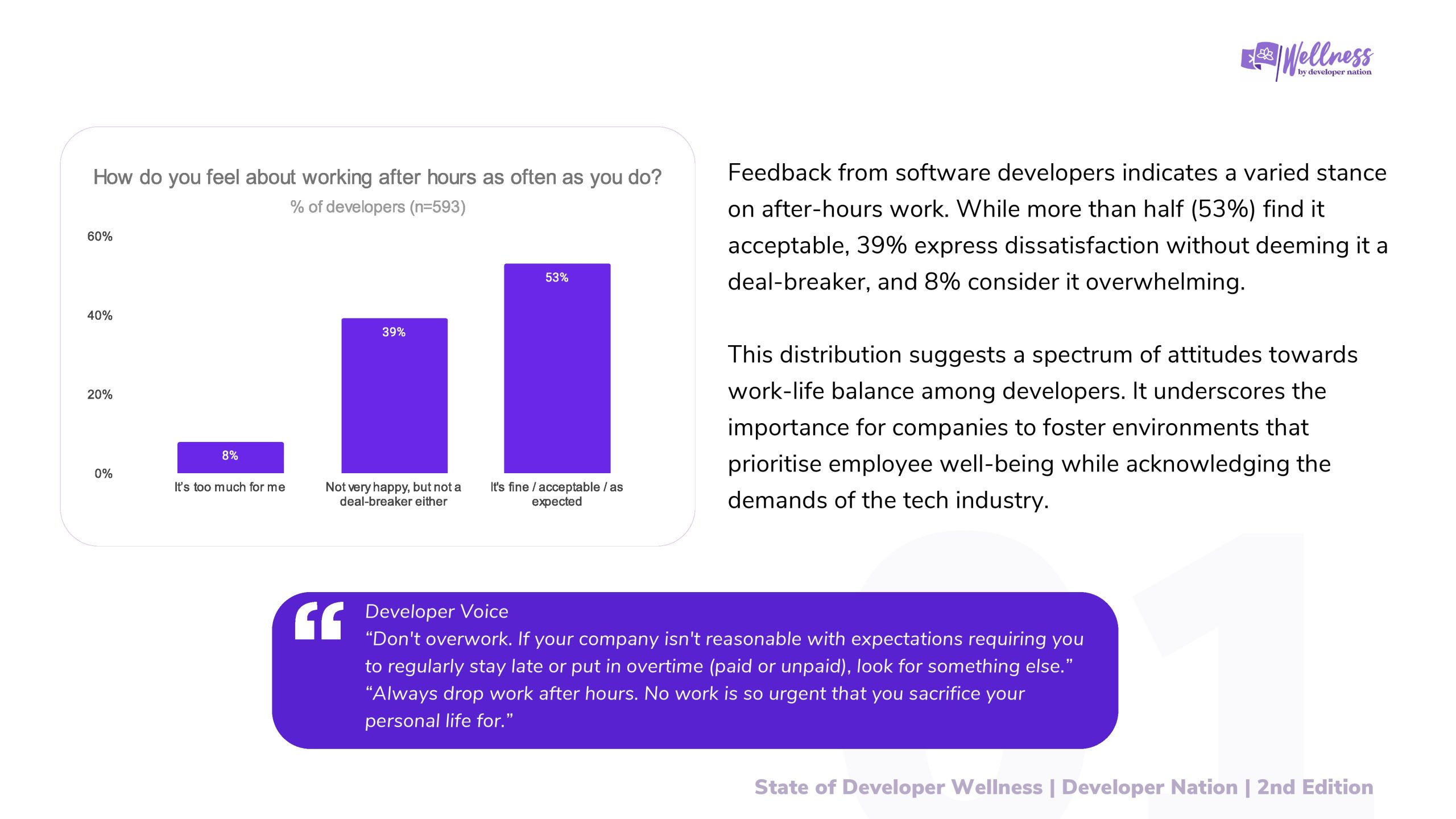 这种表明开发人员对工作与生活平衡的不同态度。它强调了企业在承认科技行业需求的同时,营造优先考虑员工福祉的环境的重要性。