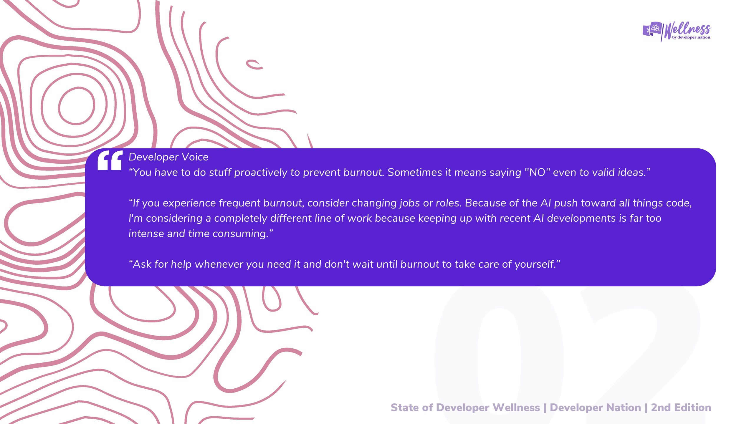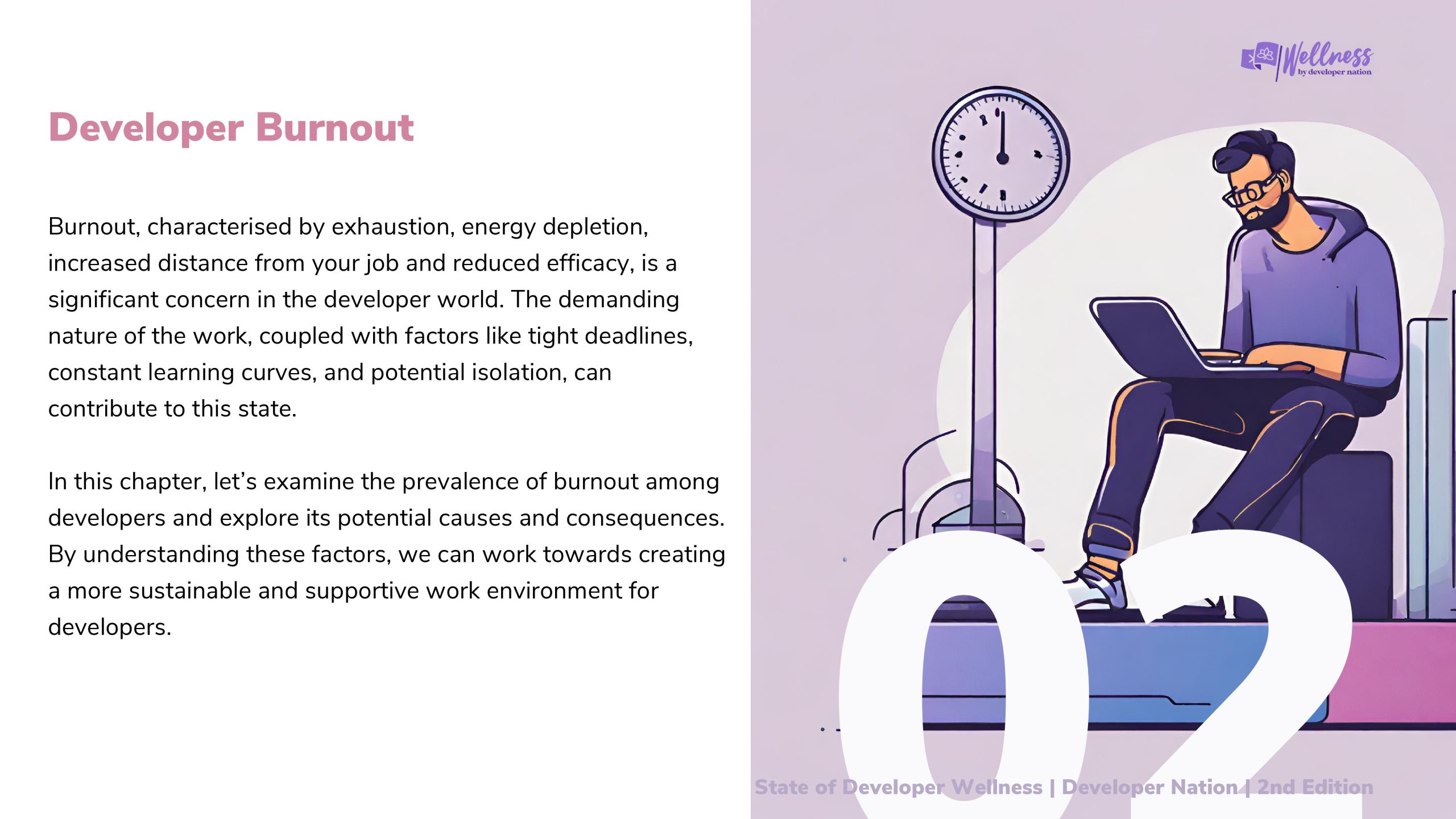 职业倦怠的特征是精疲力竭、精力耗尽、与工作的距离增加以及效率降低,这是开发者世界中一个重要的问题。工作的高要求,加上紧迫的截止日期、不断的学习曲线和潜在的孤立感等因素,都可能导致这种状态。
