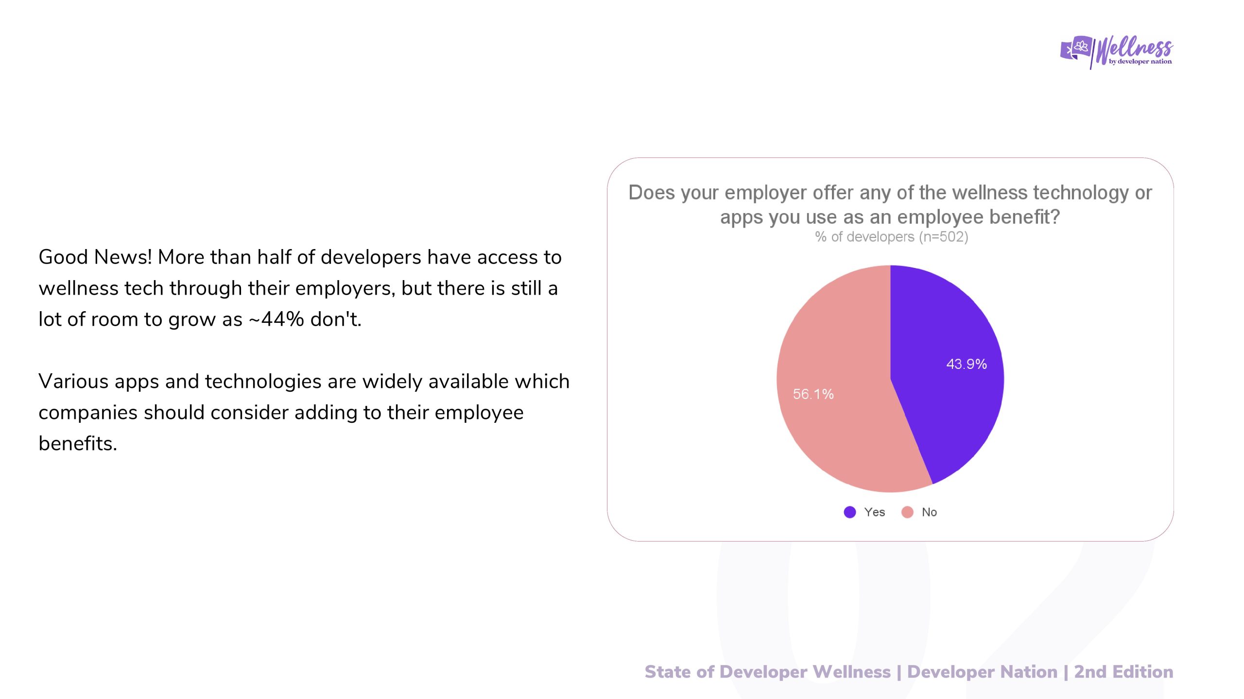 尽管数据令人担忧,许多开发者现在比以往任何时候都更加关注他们的幸福。2024年,超过一半的开发者可以通过雇主获得健康技术,健身追踪器、正念应用等。在科技行业的激烈竞争和不确定性中,越来越多的开发者开始优先考虑自己的身心健康。