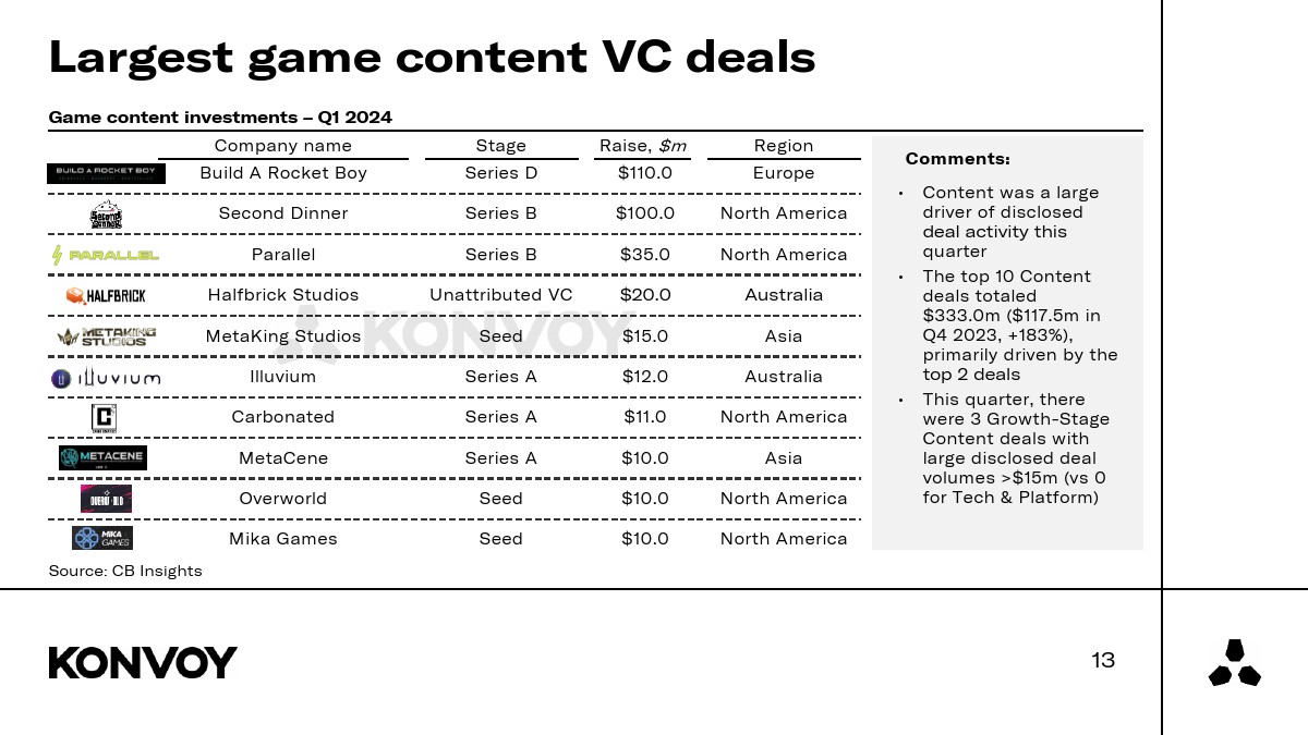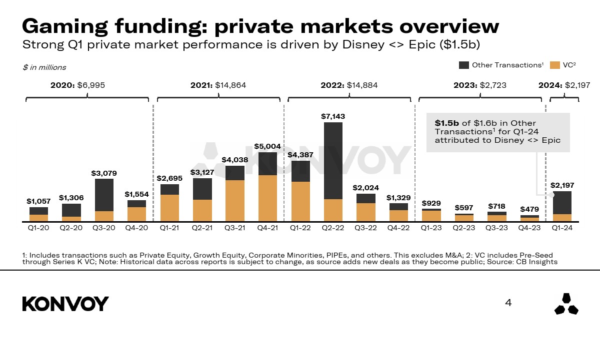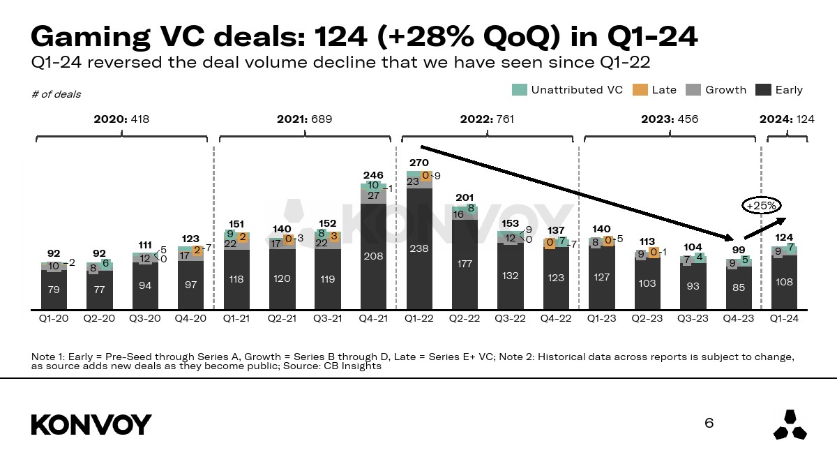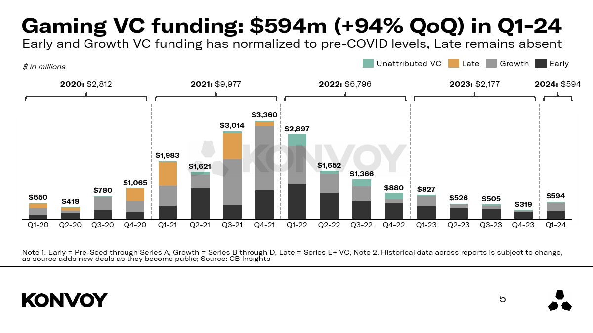 游戏风险投资:2024年第一季度获得5.94亿美元(环比增长94%)
