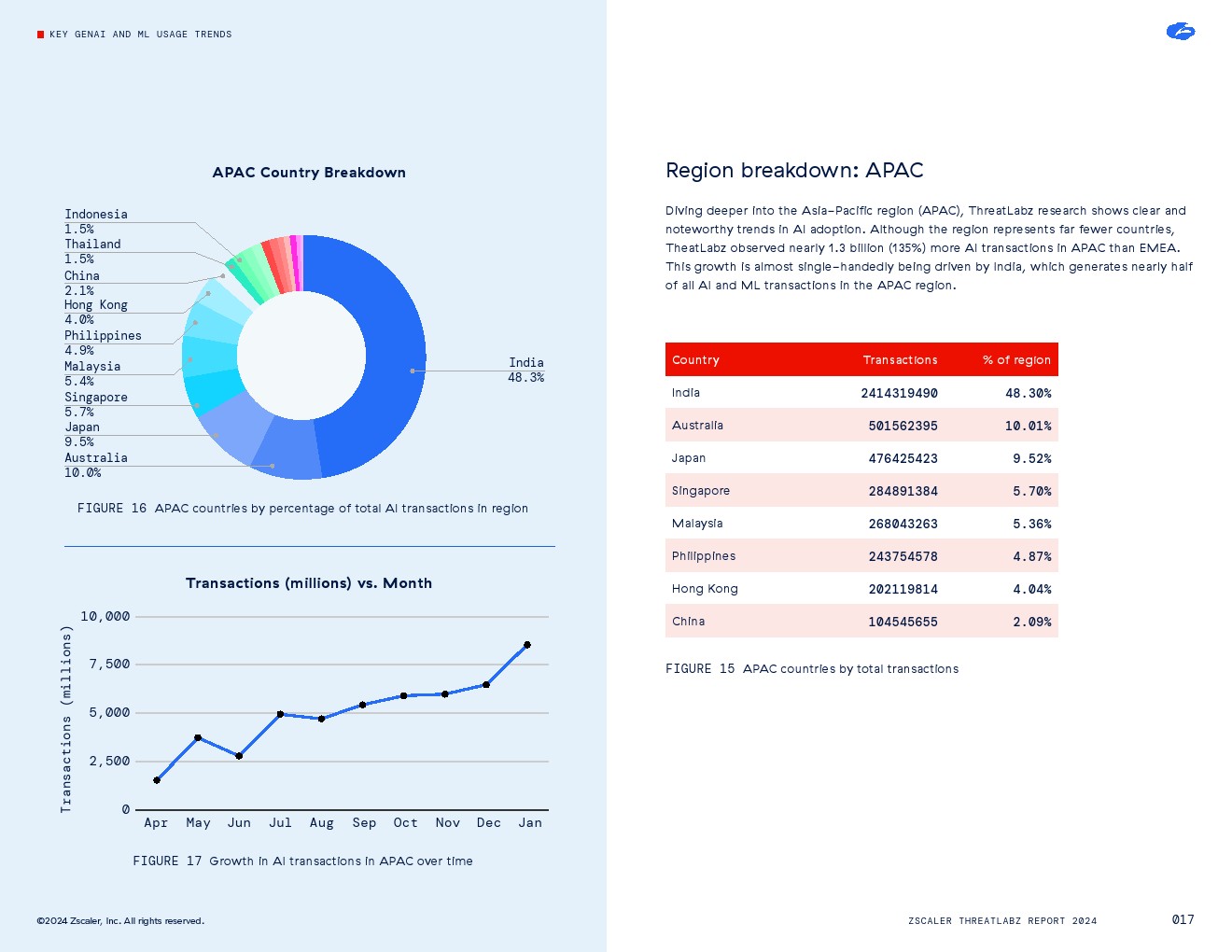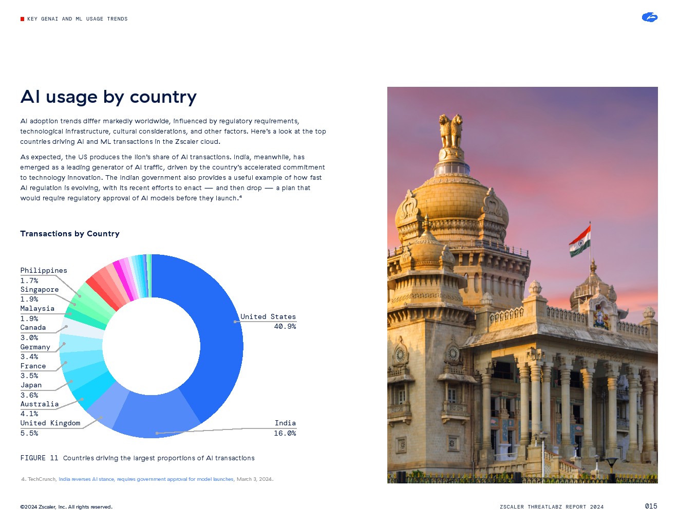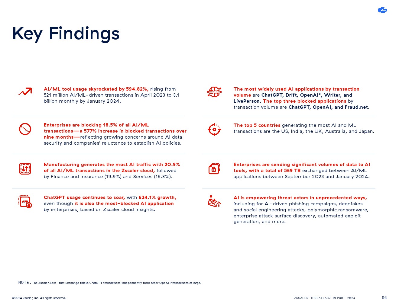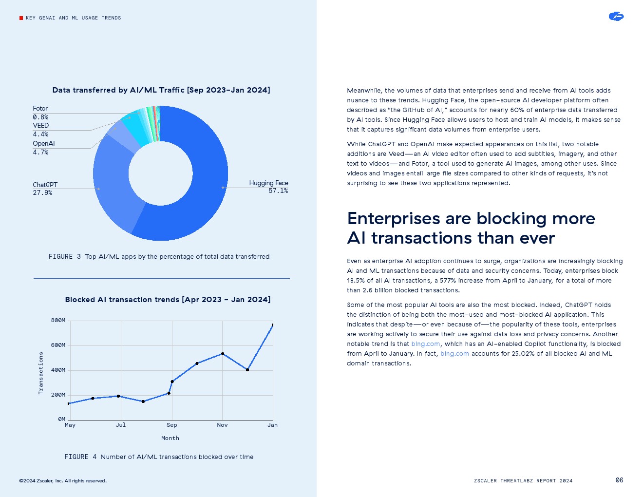 企业阻止了18.5%的人工智能/机器学习交易,在几个月内被阻止的交易增加了577%。反映了对AI数据安全的担忧正在增长。