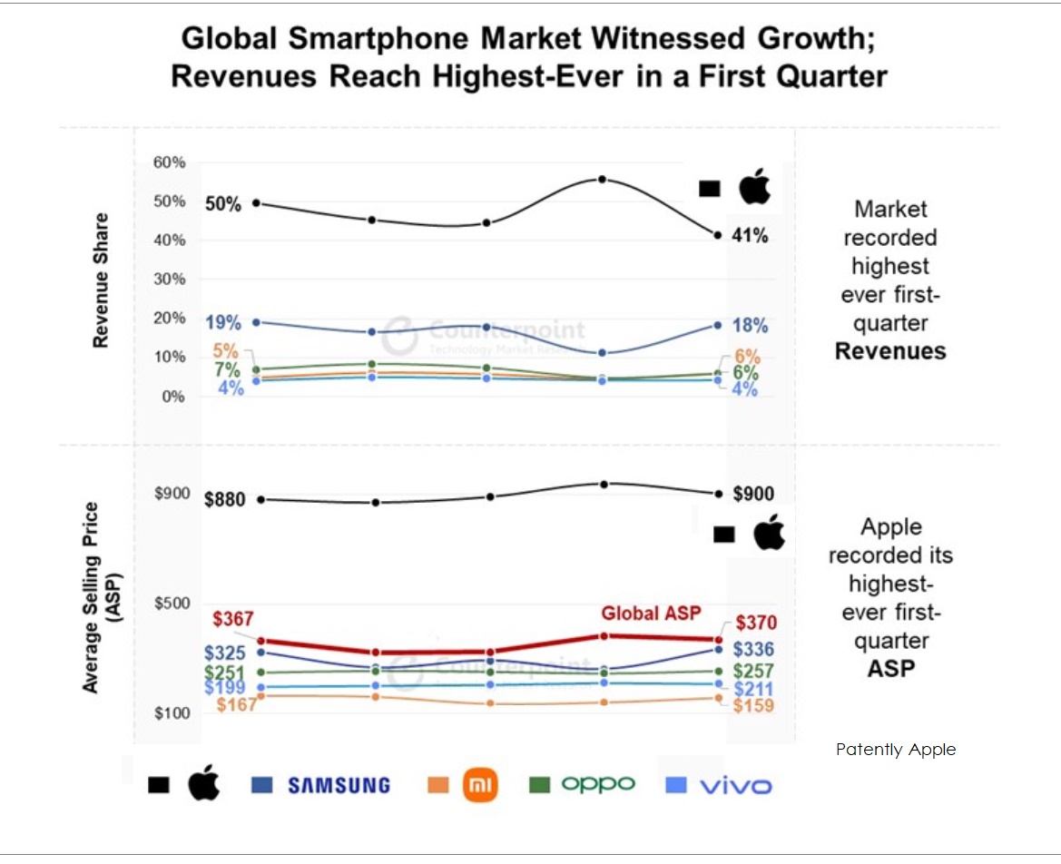 该季度,苹果手机均价高达900美元(约合6,517元人民币),创造了其第一季度有史以来最高的均价。