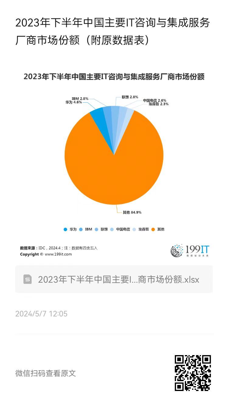 2023年下半年中国主要IT咨询与集成服务厂商市场份额(附原数据表) ​​​
