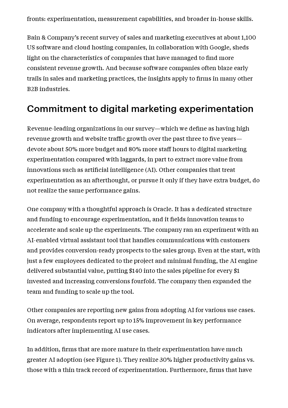 研究人员发现,与落后者相比,高增长公司在数字营销实验上的预算和工作时间分别高出50%和80%。