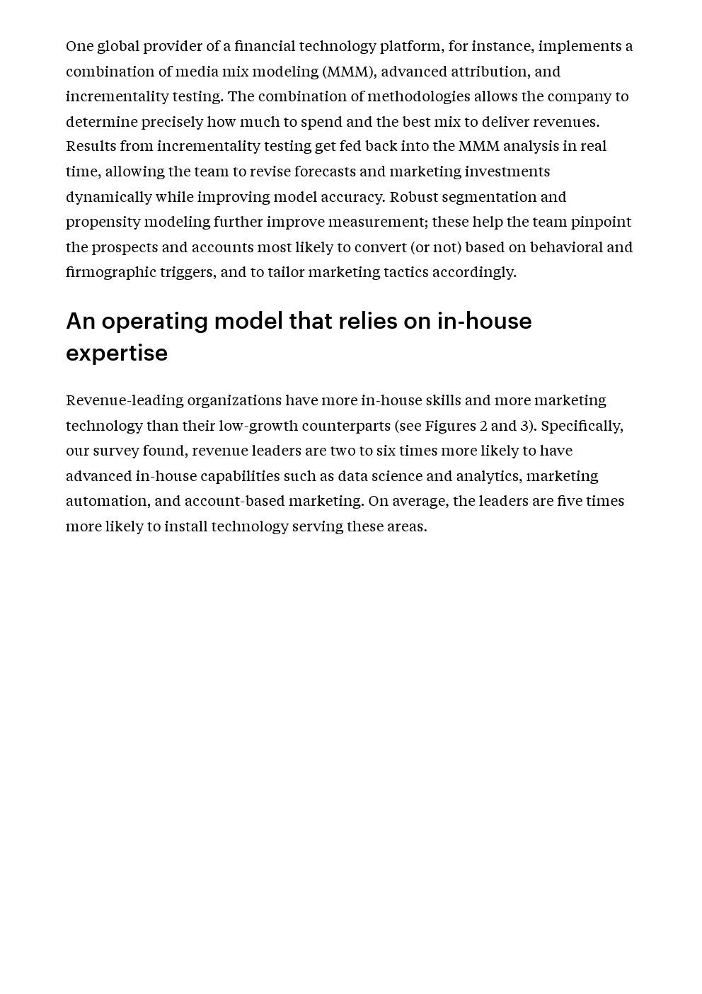 该报告强调,高增长公司测量包括账户参与度和基于意图的第三方数据的可能性要高出2-3倍。他们还对自己的营销测量和归因方法更有信心。