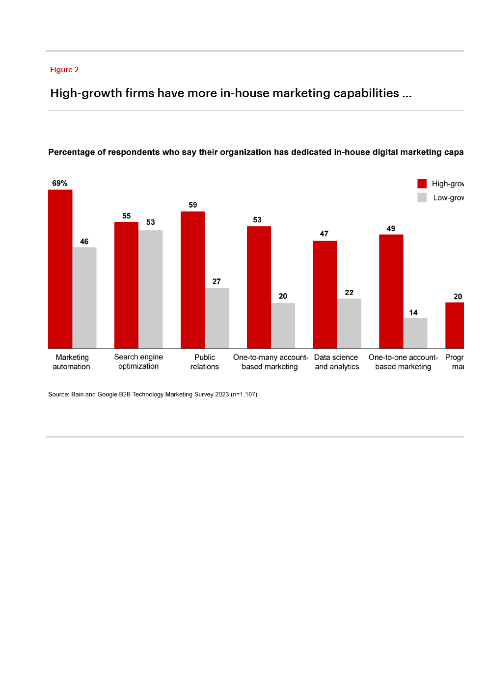 高增长公司比低增长公司更有可能拥有专门的内部数字营销能力,但在某些领域存在相当大的差距。
