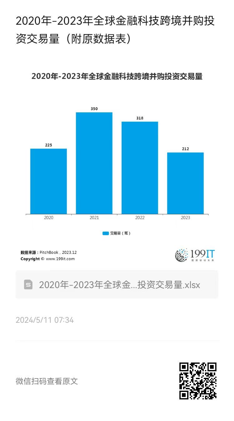 - 2020年-2023年全球金融科技并购投资交易量(附原数据表)