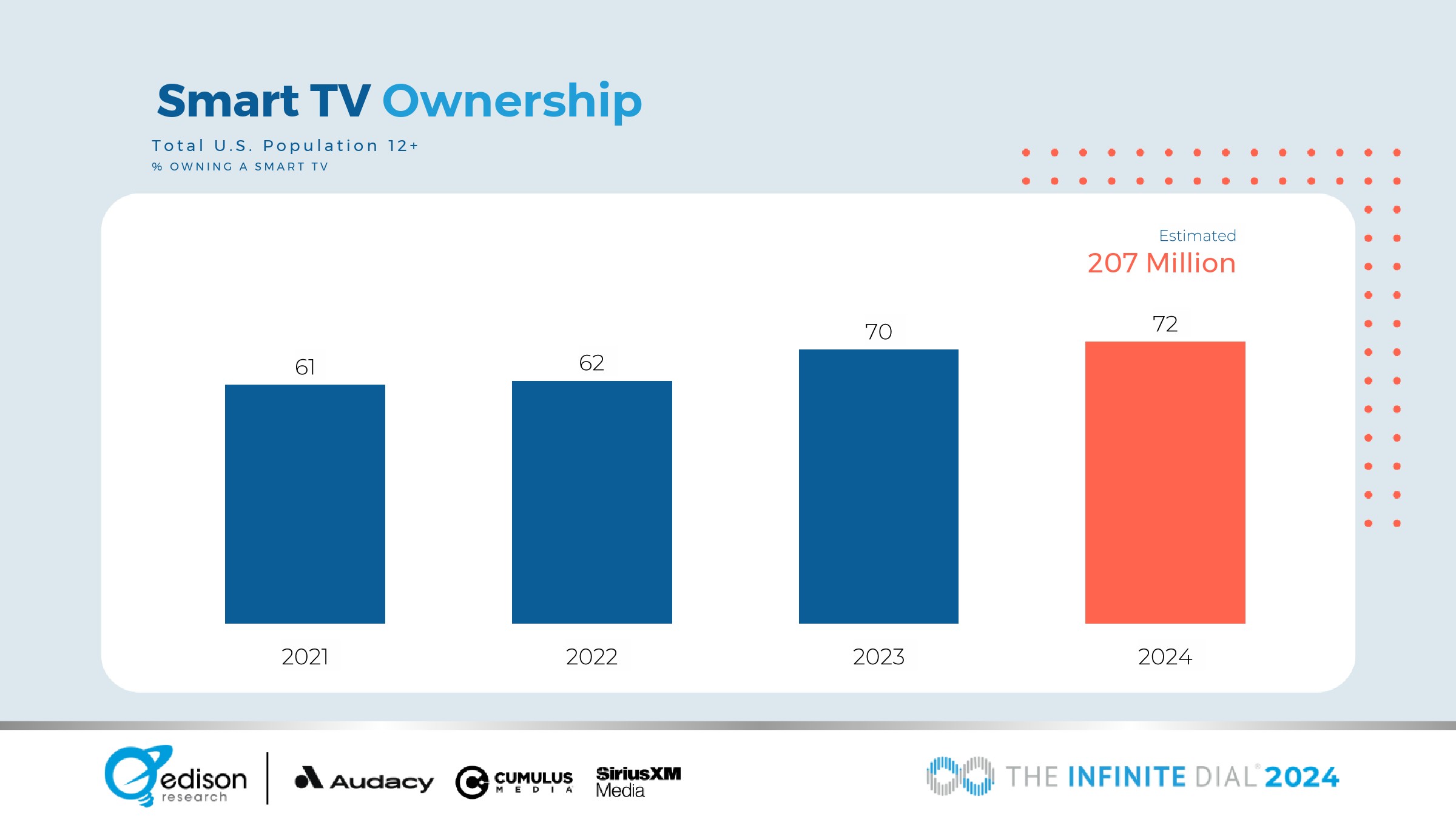 12岁以上人群中72%拥有智能电视。
