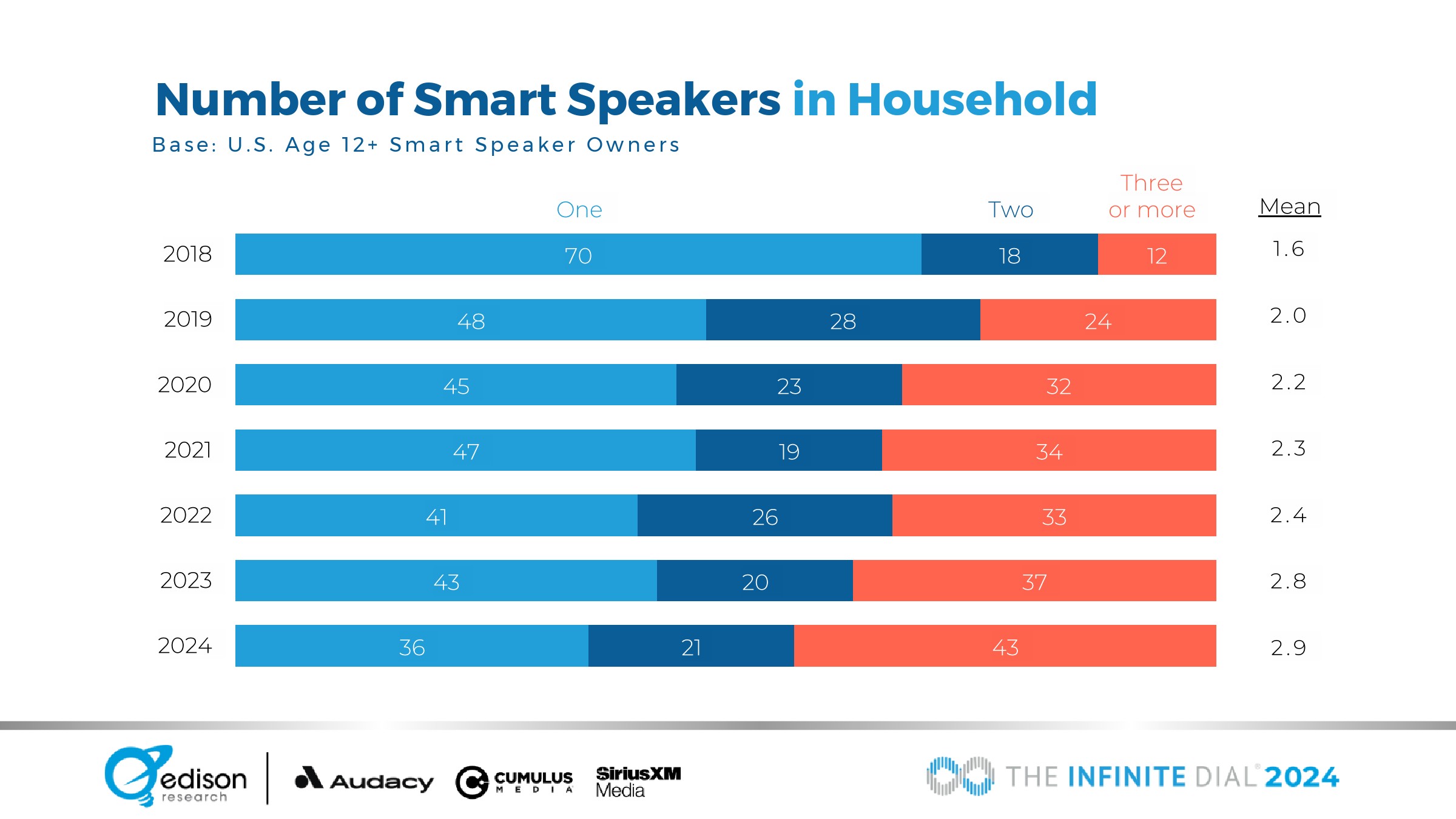 近一半的智能音箱用户(43%)拥有三台或更多智能音箱。