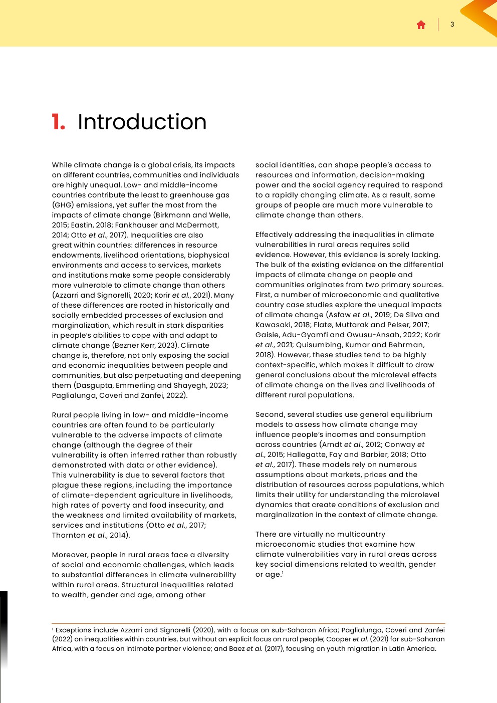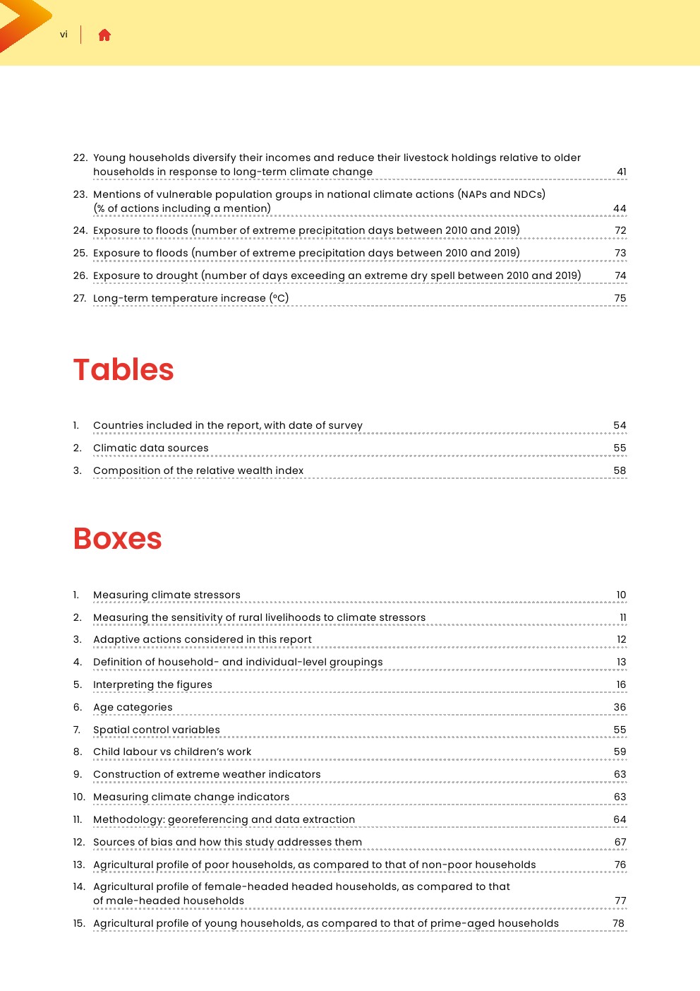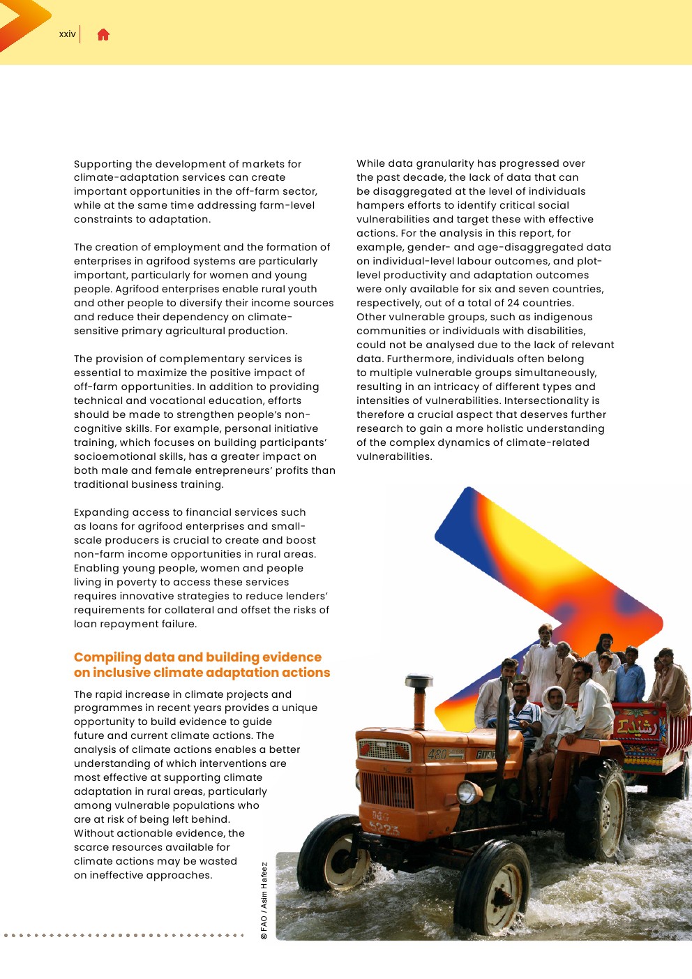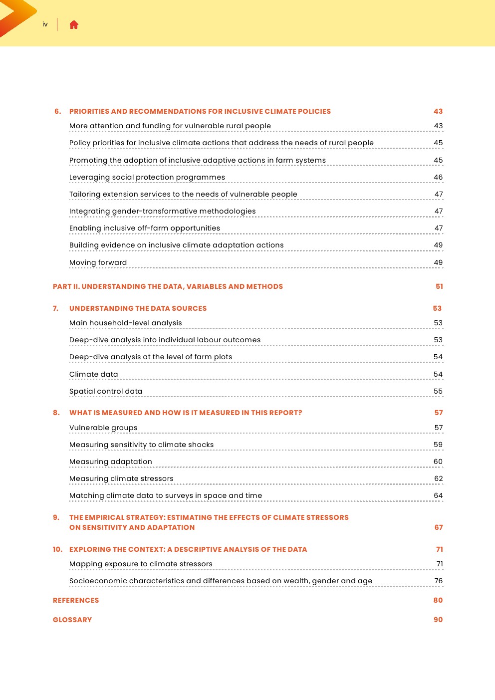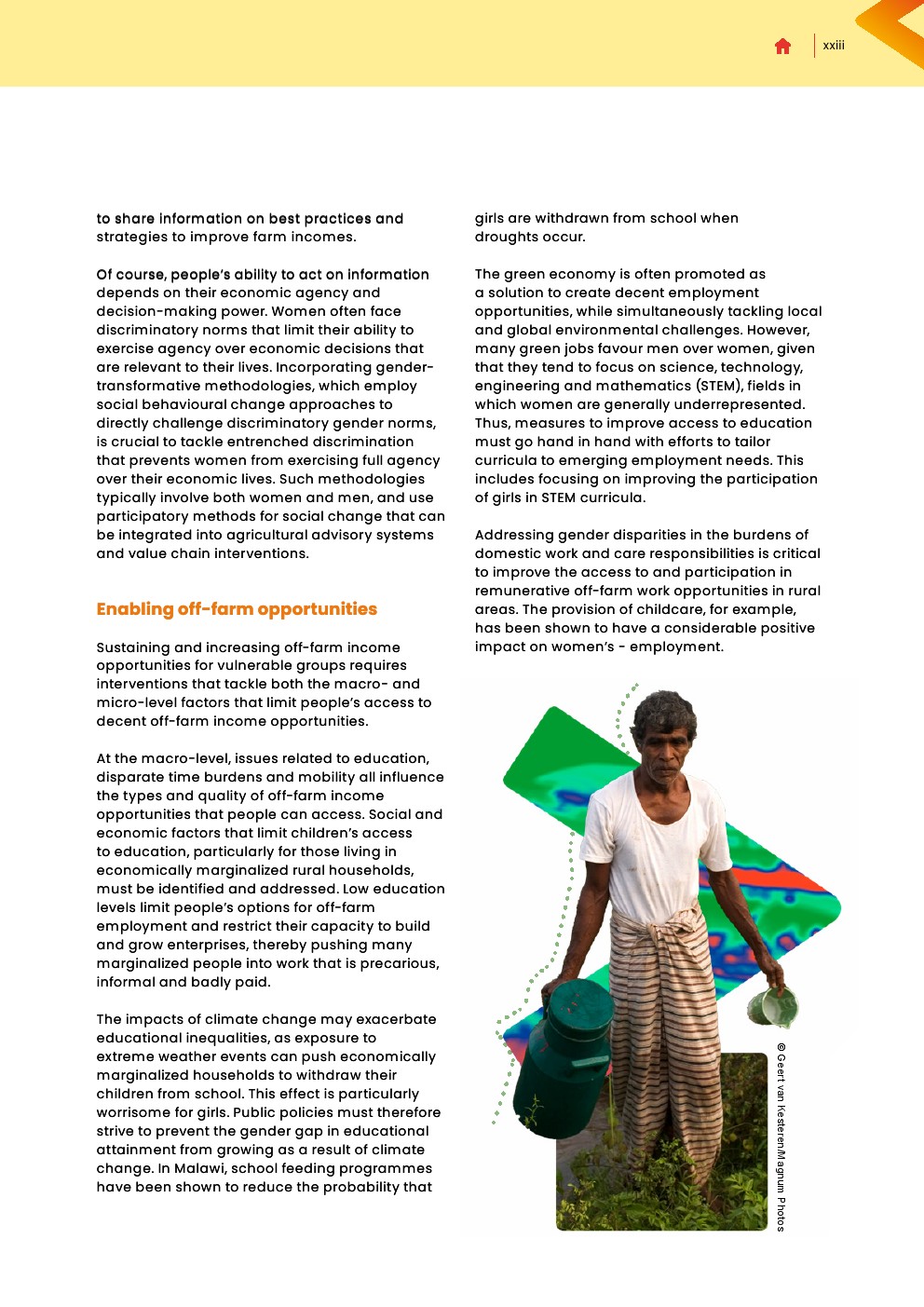 农村人口及其气候脆弱性在国家气候政策中几乎不为人所知。在报告分析的24个国家的国家自主贡献(NDCs)和国家适应计划(NAP),在拟议的4164项气候行动中,只有6%提到了妇女,2%明确提到了青年,不到1%提到了穷人,约6%提到了农村社区的农民。