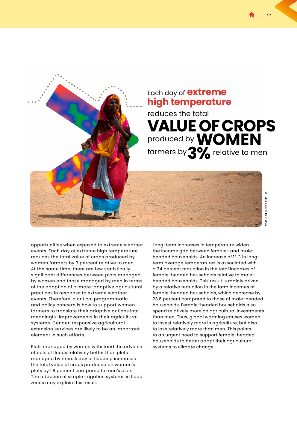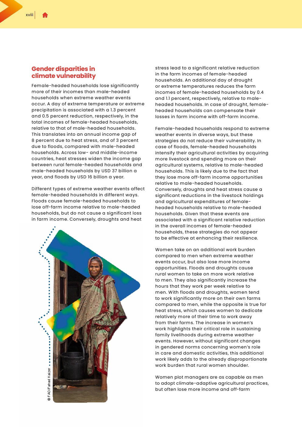联合国粮食及农业组织发布了新报告“不公平的气候”。平均每年因高温造成的损失占家庭收入的5%,因洪水造成的损失占4.4%。