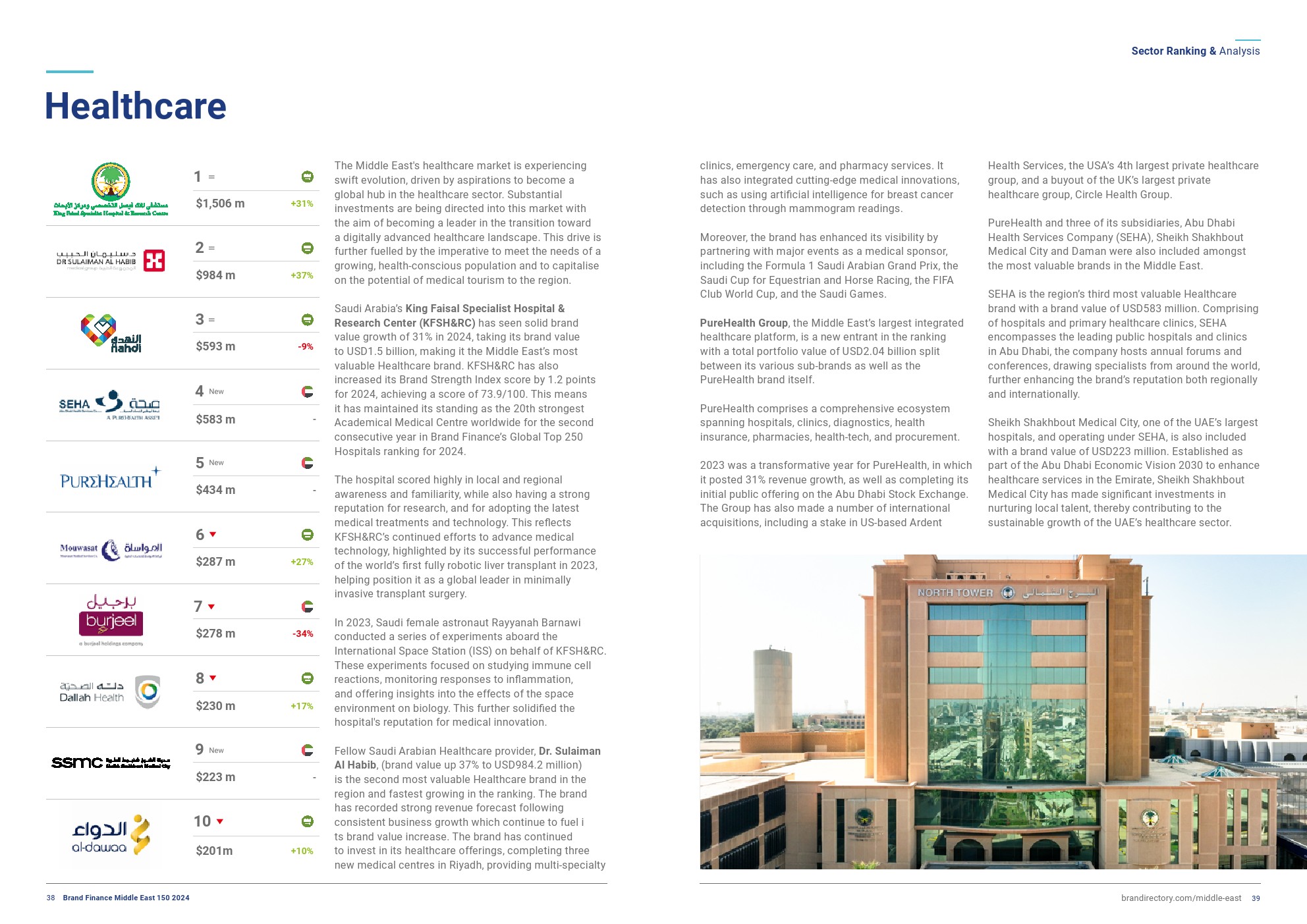PureHealth Group以4.342亿美元的品牌价值进入榜单。2023年是PureHealth Group转型的一年,这一年它实现了强劲的收入增长,并在阿布扎比证券交易所完成了首次公开募股。
