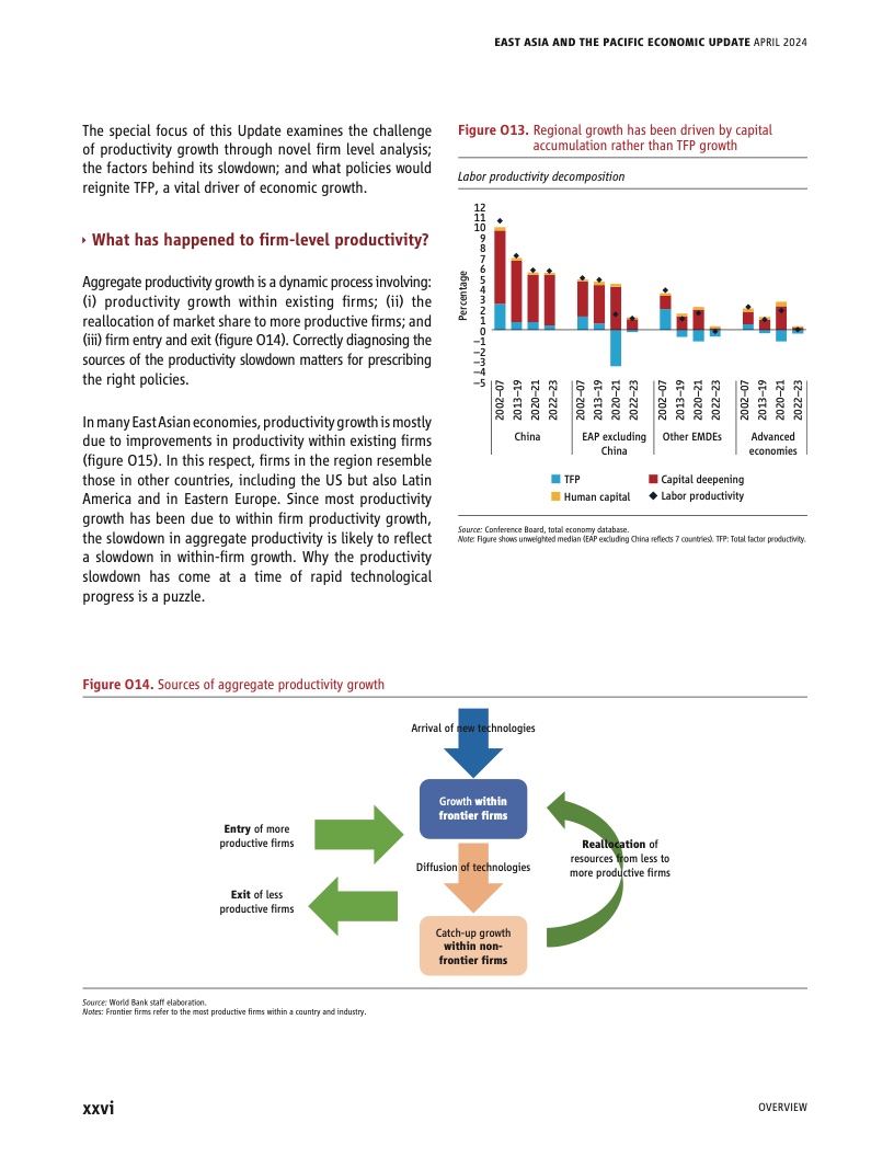 在过去十年中,增长的主要动力来自投资,而不是企业生产率的提高。从长远来看,全要素生产率——投入转化为产出的效率——是经济增长的主要驱动力。要实现可持续的长期增长,就必须提高全要素生产率。