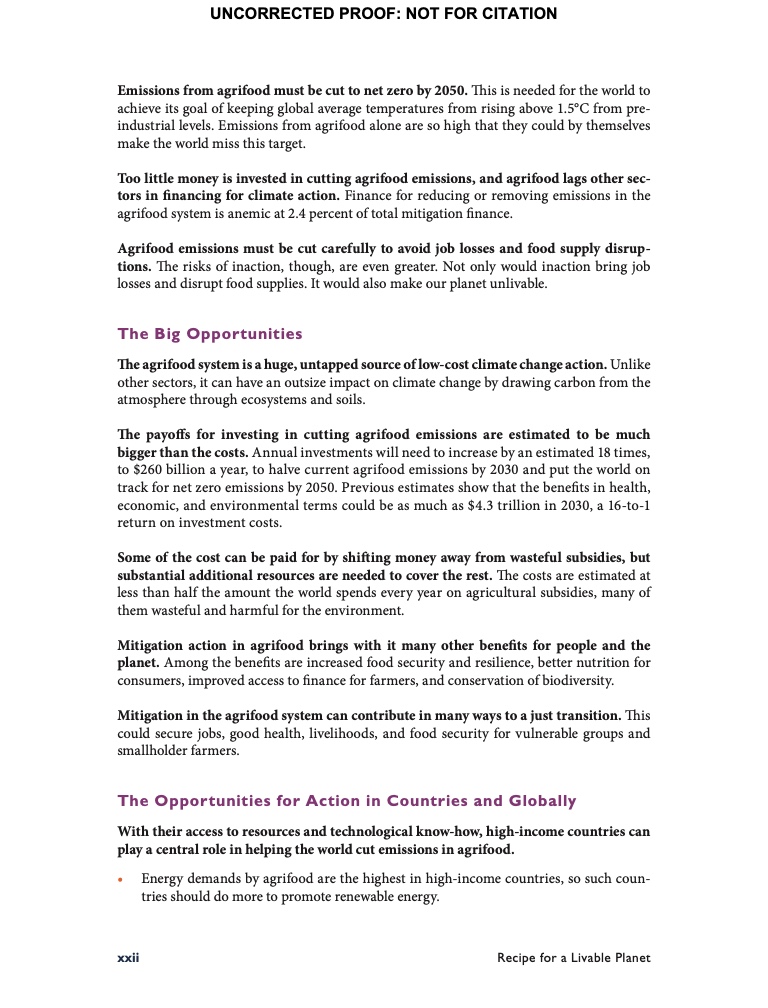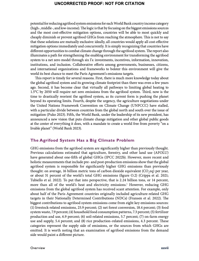 该报告将农业食品系统视为低成本气候变化行动的一个相当重要且尚未开发的来源。与其他行业不同,农业食品系统能够借助减少排放和自然吸收大气中的碳来对气候变化形成巨大效果。