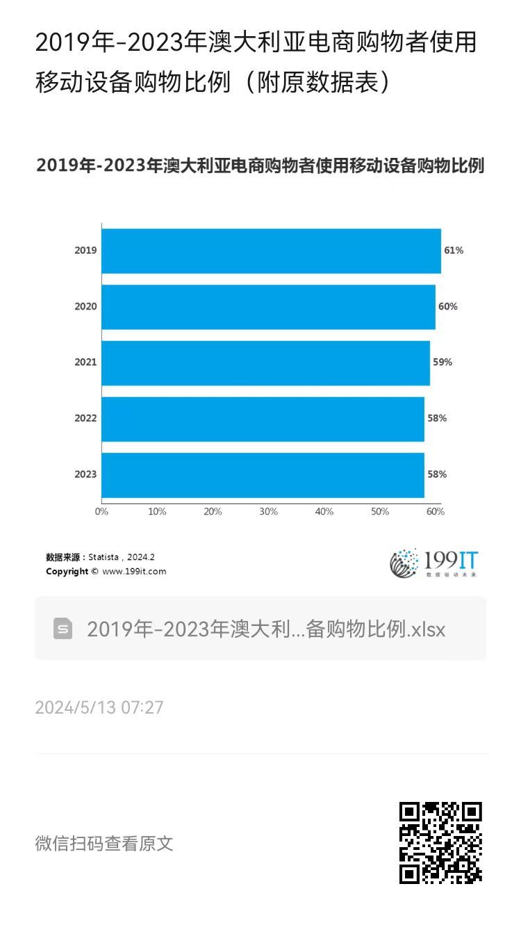 - 2019年-2023年澳大利亚电商购物者使用电子钱包交易比例(附原数据表)