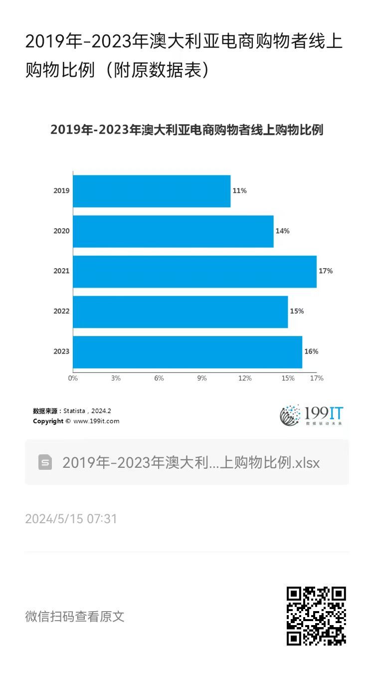 - 2019年-2023年澳大利亚电商购物者线下购物比例(附原数据表)