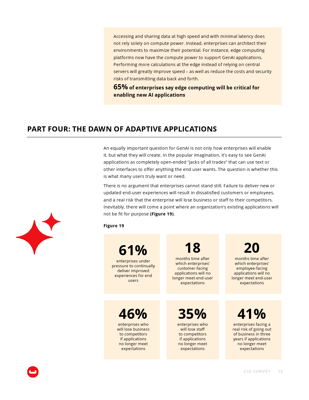 对于许多IT部门来说,最大的问题是他们是否能够支持不受约束的人工智能增长。平均而言,受访者认为他们的IT基础设施在19个月内将无法支持内部运行的GenAI应用程序。正因为如此,企业正在寻找其他方法来获得必要的计算能力。