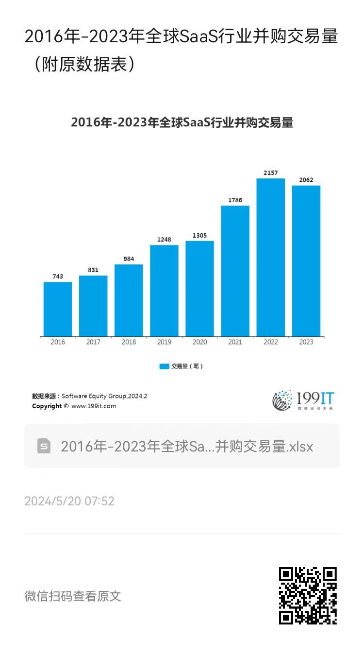 2016年-2023年全球SaaS行业并购交易量(附原数据表) ​​​