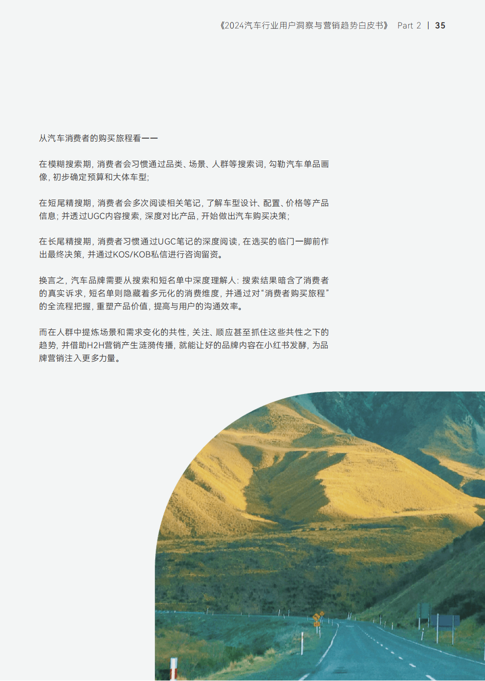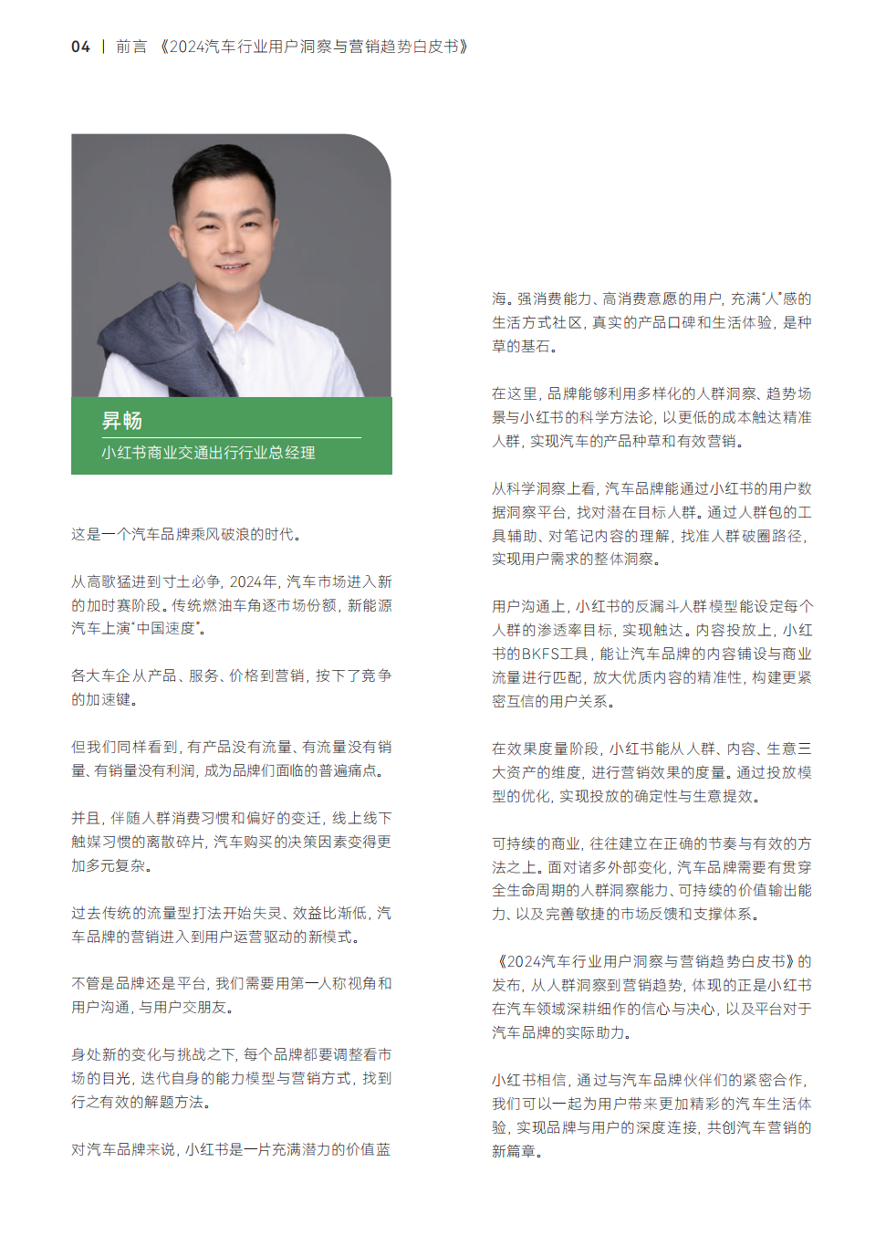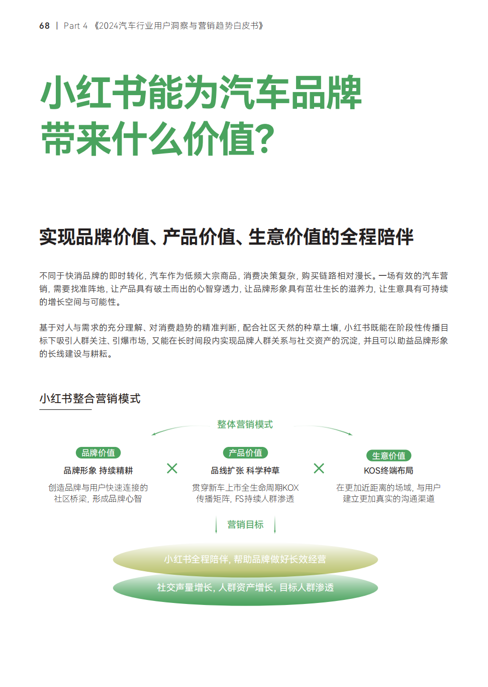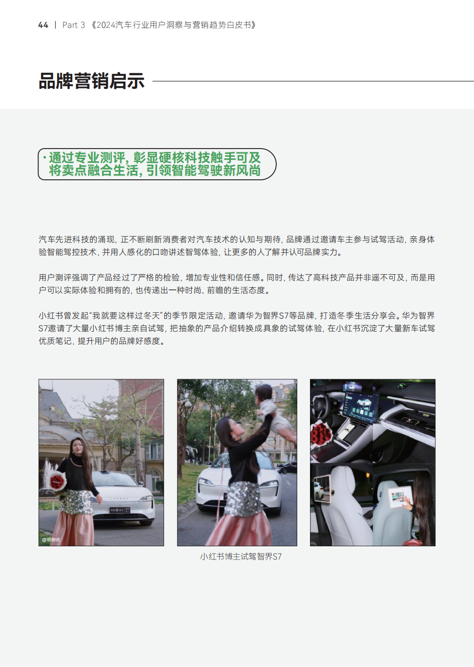 《2024汽车行业用户洞察与营销趋势白皮书》的发布,从人群洞察到营销趋势,体现的正是小红书在汽车领域深耕细作的信心与决心,以及平台对于汽车品牌的实际助力。