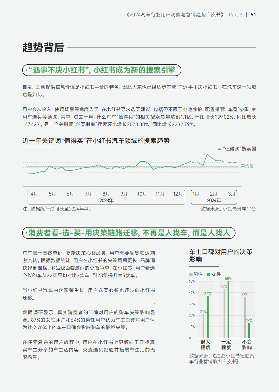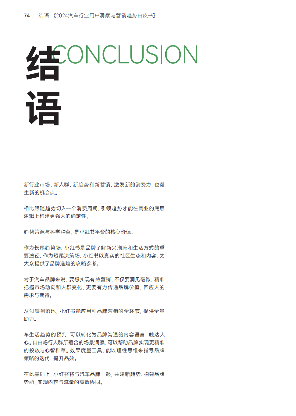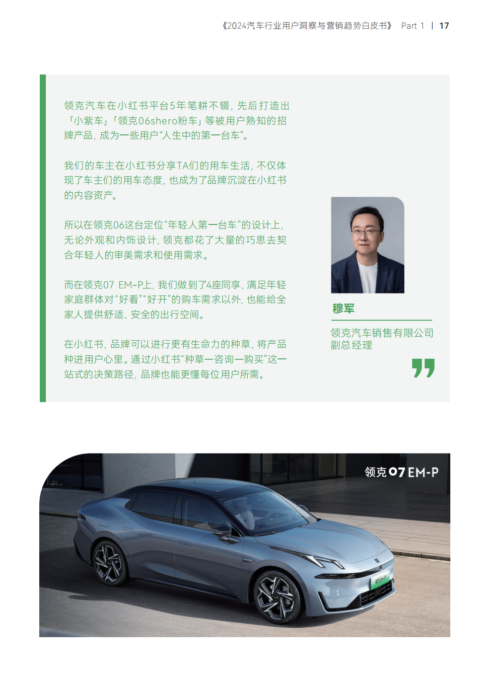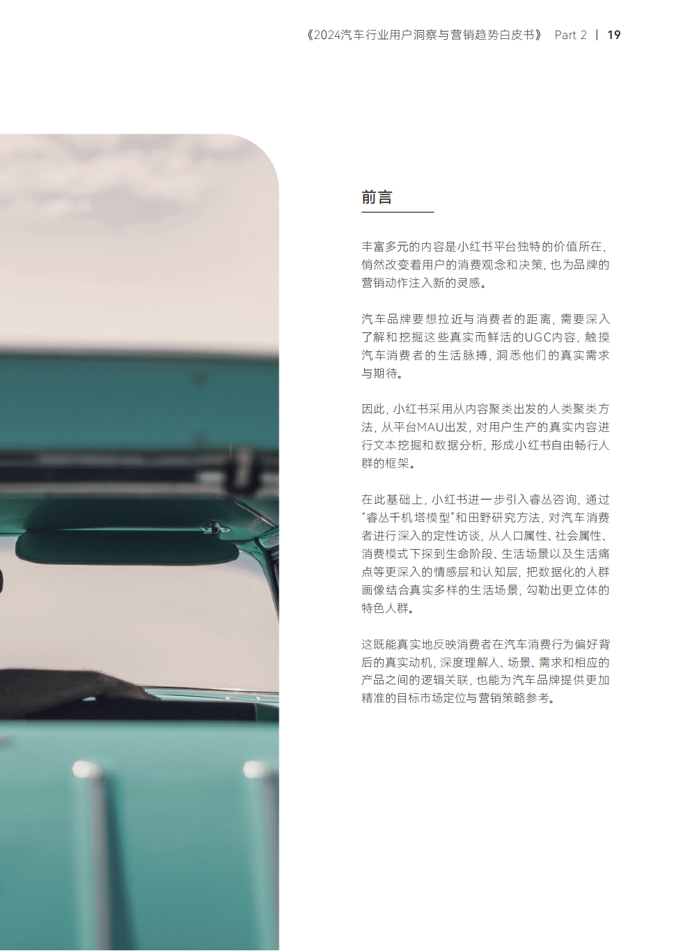 《2024汽车行业用户洞察与营销趋势白皮书》的发布,从人群洞察到营销趋势,体现的正是小红书在汽车领域深耕细作的信心与决心,以及平台对于汽车品牌的实际助力。