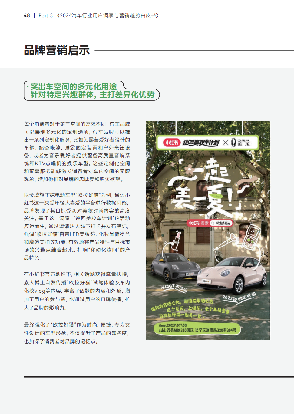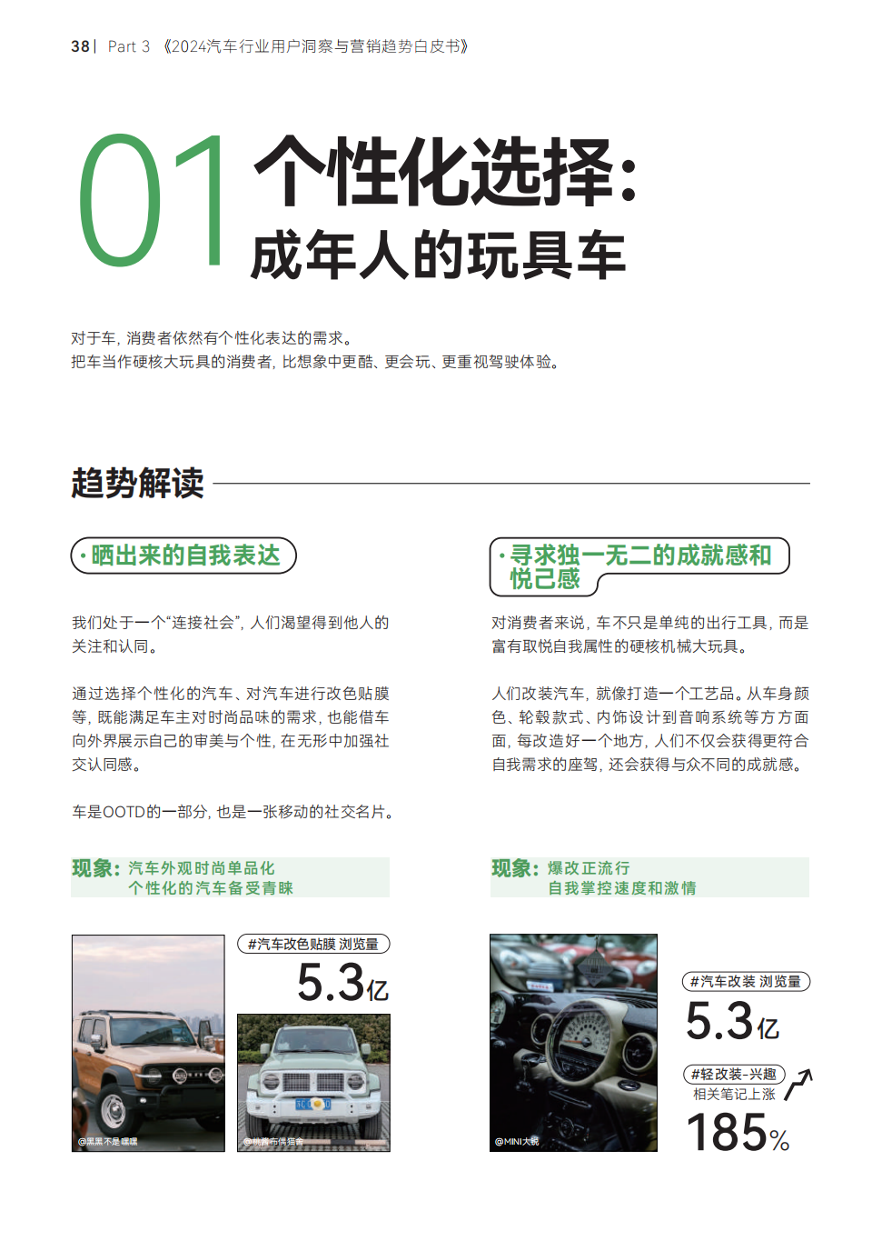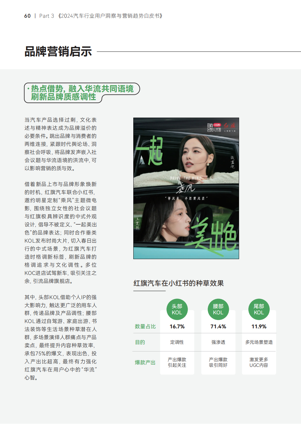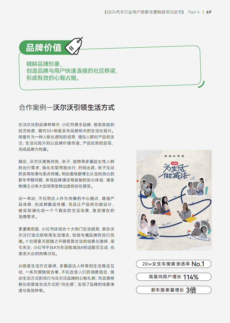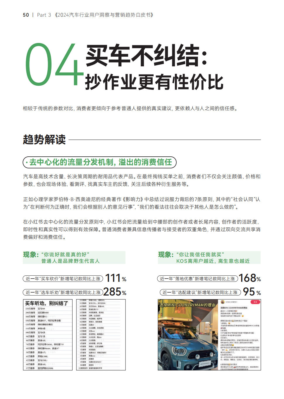 《2024汽车行业用户洞察与营销趋势白皮书》的发布,从人群洞察到营销趋势,体现的正是小红书在汽车领域深耕细作的信心与决心,以及平台对于汽车品牌的实际助力。