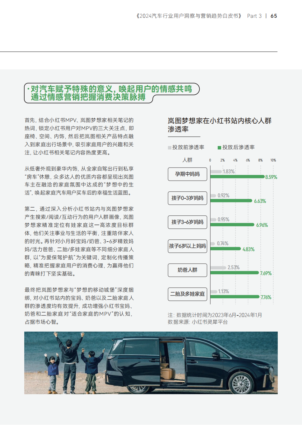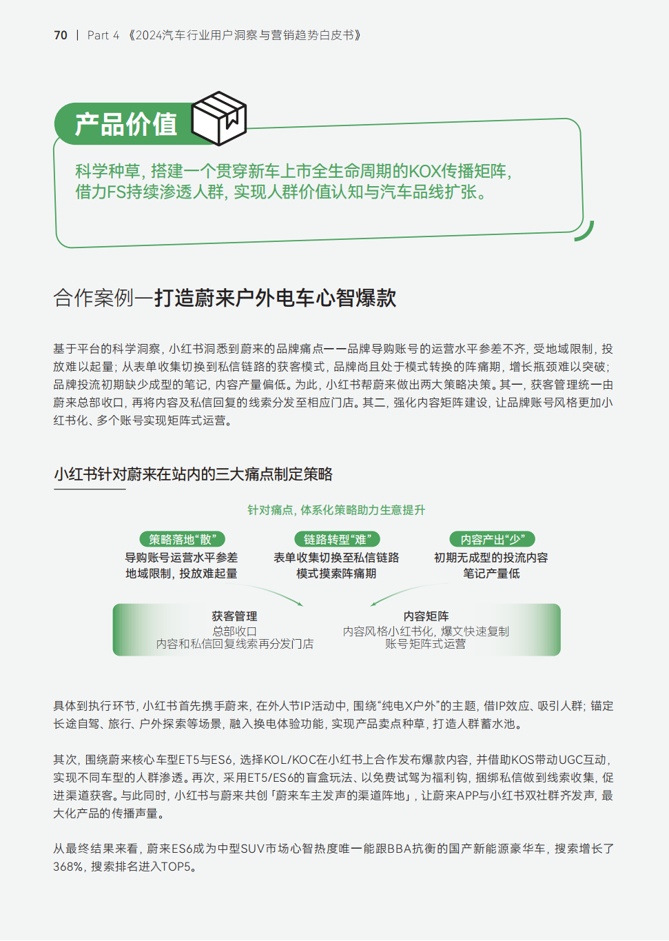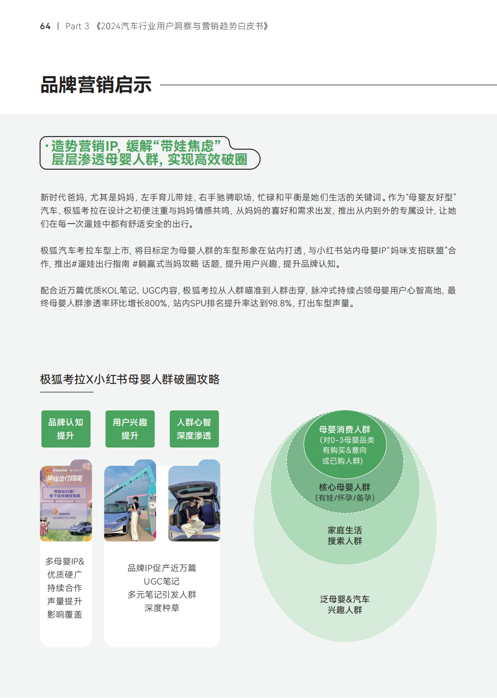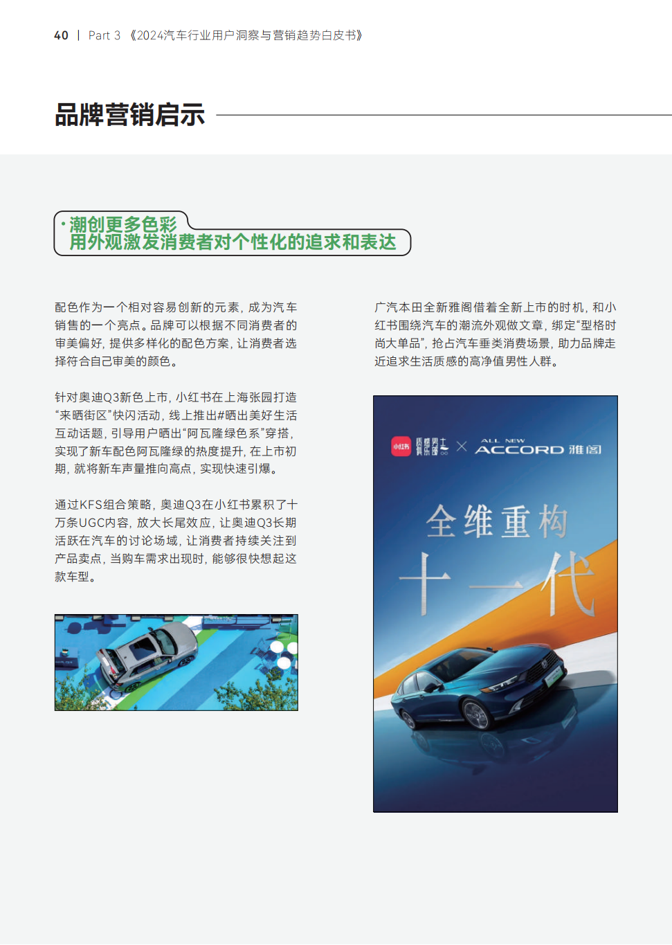 《2024汽车行业用户洞察与营销趋势白皮书》的发布,从人群洞察到营销趋势,体现的正是小红书在汽车领域深耕细作的信心与决心,以及平台对于汽车品牌的实际助力。