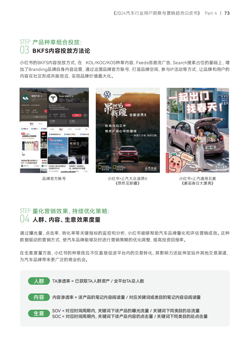 用户沟通上,小红书的反漏斗人群模型能设定每个人群的渗透率目标,实现触达。内容投放上,小红书的BKFS工具,能让汽车品牌的内容铺设与商业流量进行匹配,放大优质内容的精准性,构建更紧密互信的用户关系。