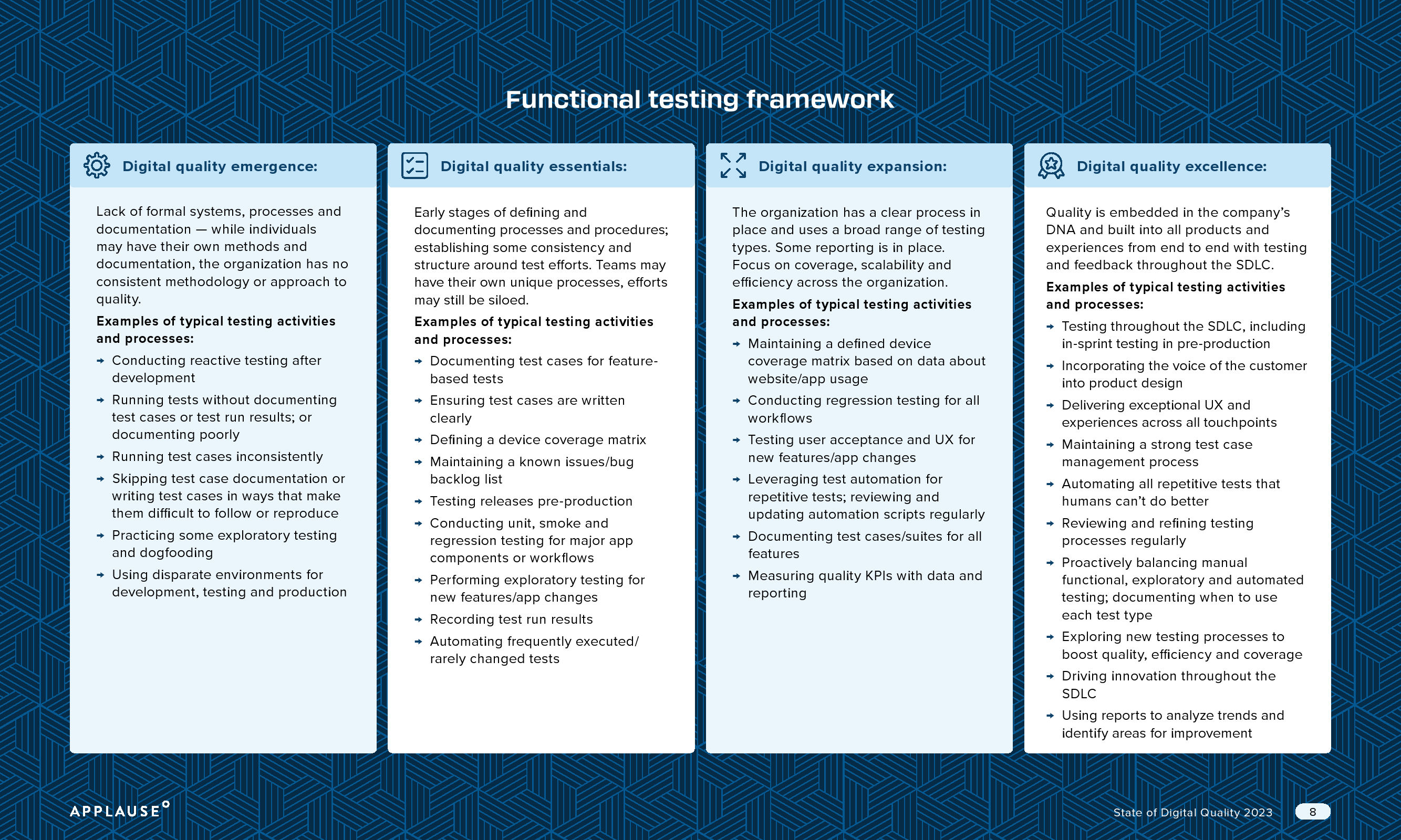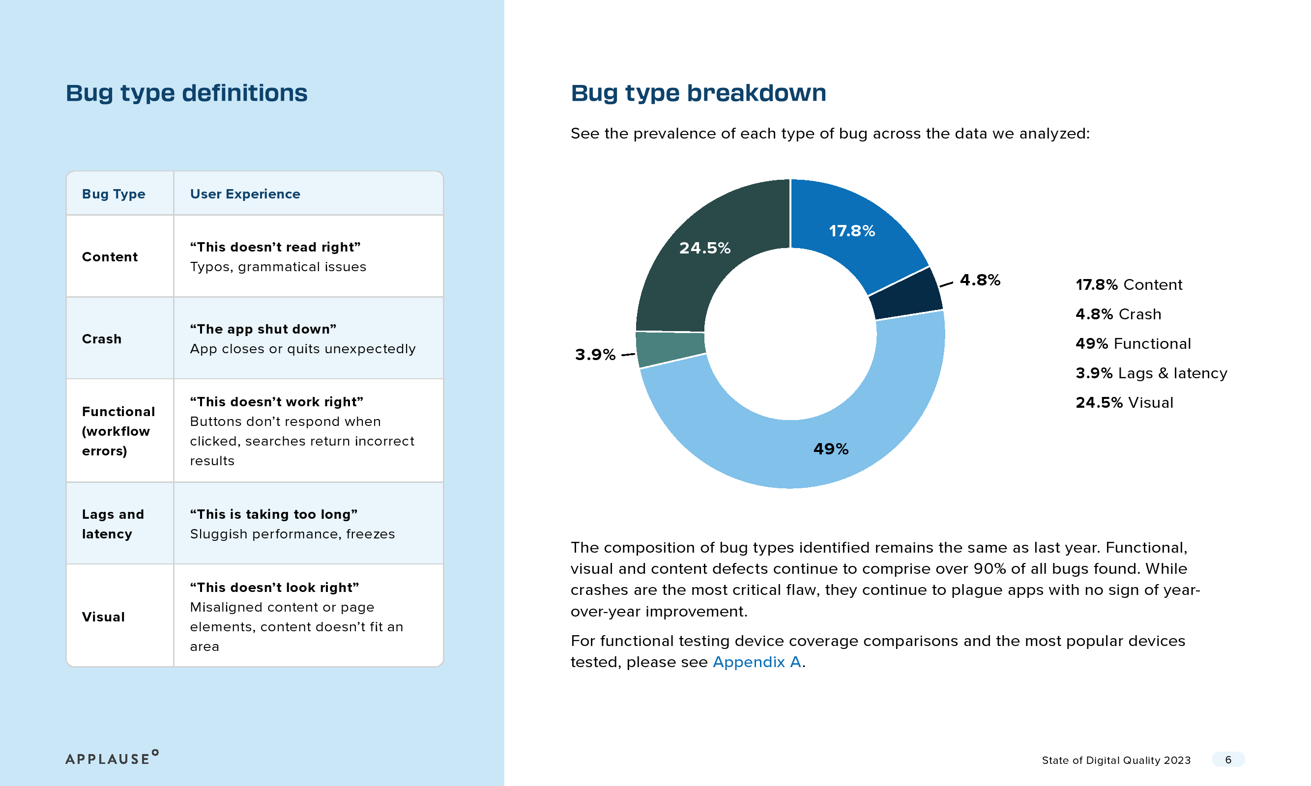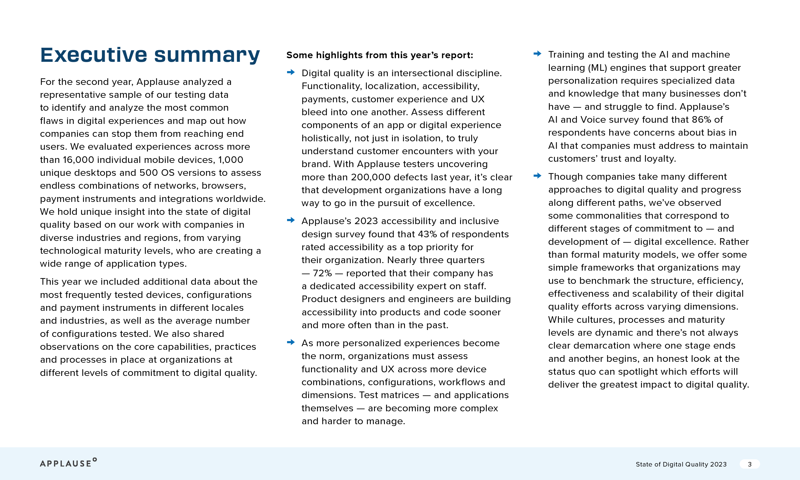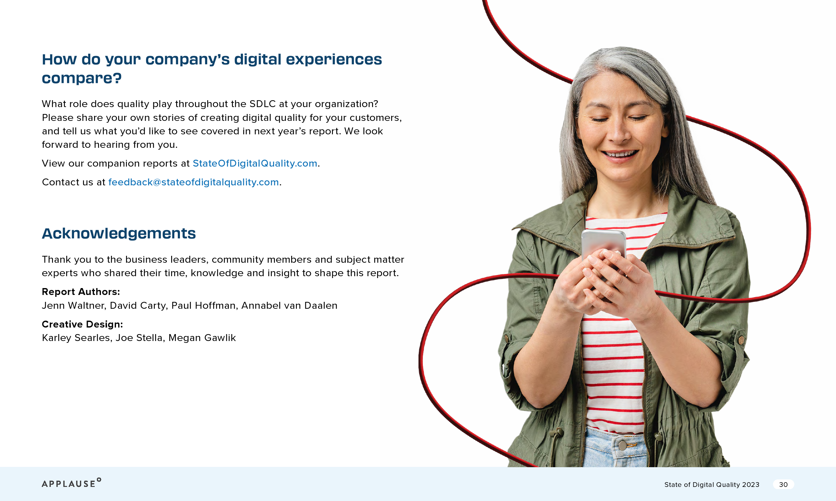 基于与不同行业和地区的公司的合作,Applause对数字质量的状态有着独特的见解,这些公司有不同的技术成熟度水平,正在创建广泛的应用类型。