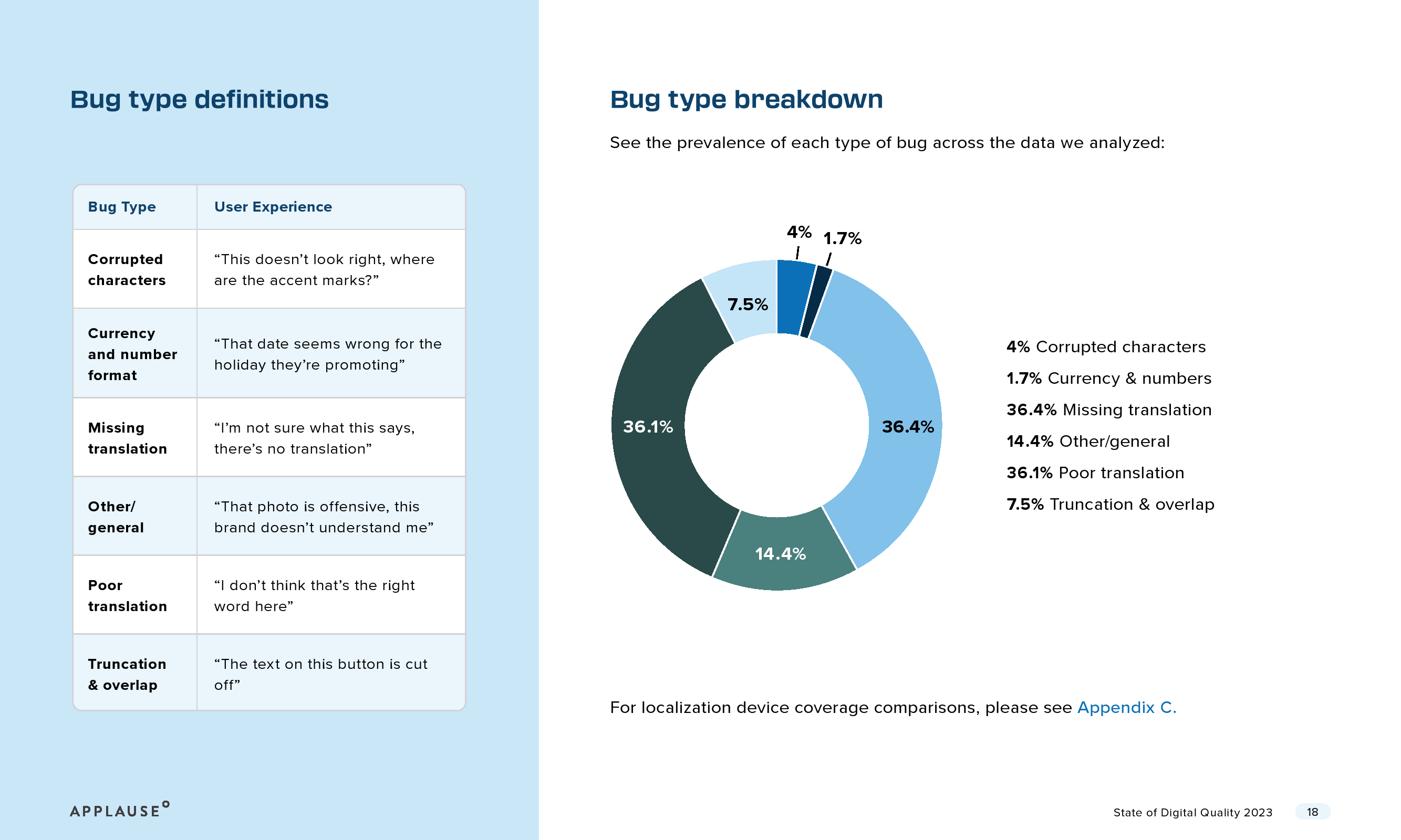 功能、本地化、可访问性、付费、用户体验相互渗透。全面评估应用程序或数字体验的不同组成部分,才能真正了解客户与品牌的接触。去年,Applause测试人员发现了超过200,000个缺陷。很明显,开发组织在追求卓越方面还有很长的路要走。