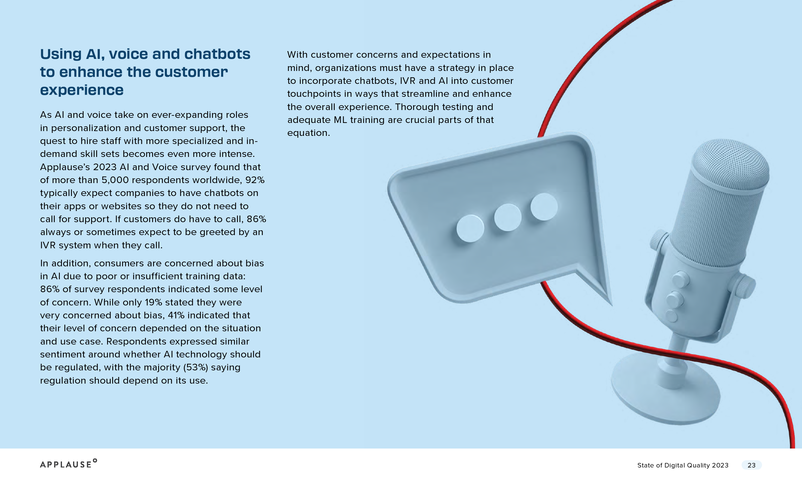培训和测试支持更大个性化的人工智能和机器学习(ML)引擎需要许多企业没有的专业数据和知识,而且很难找到。Applause的人工智能和语音调查发现,86%的受访者担心人工智能存在偏见,企业必须解决这个问题,以保持客户的信任和忠诚度。