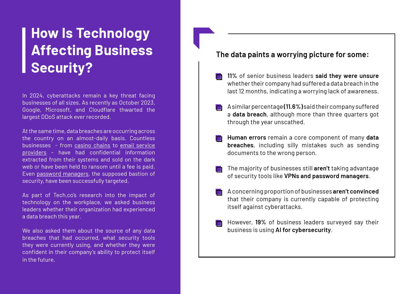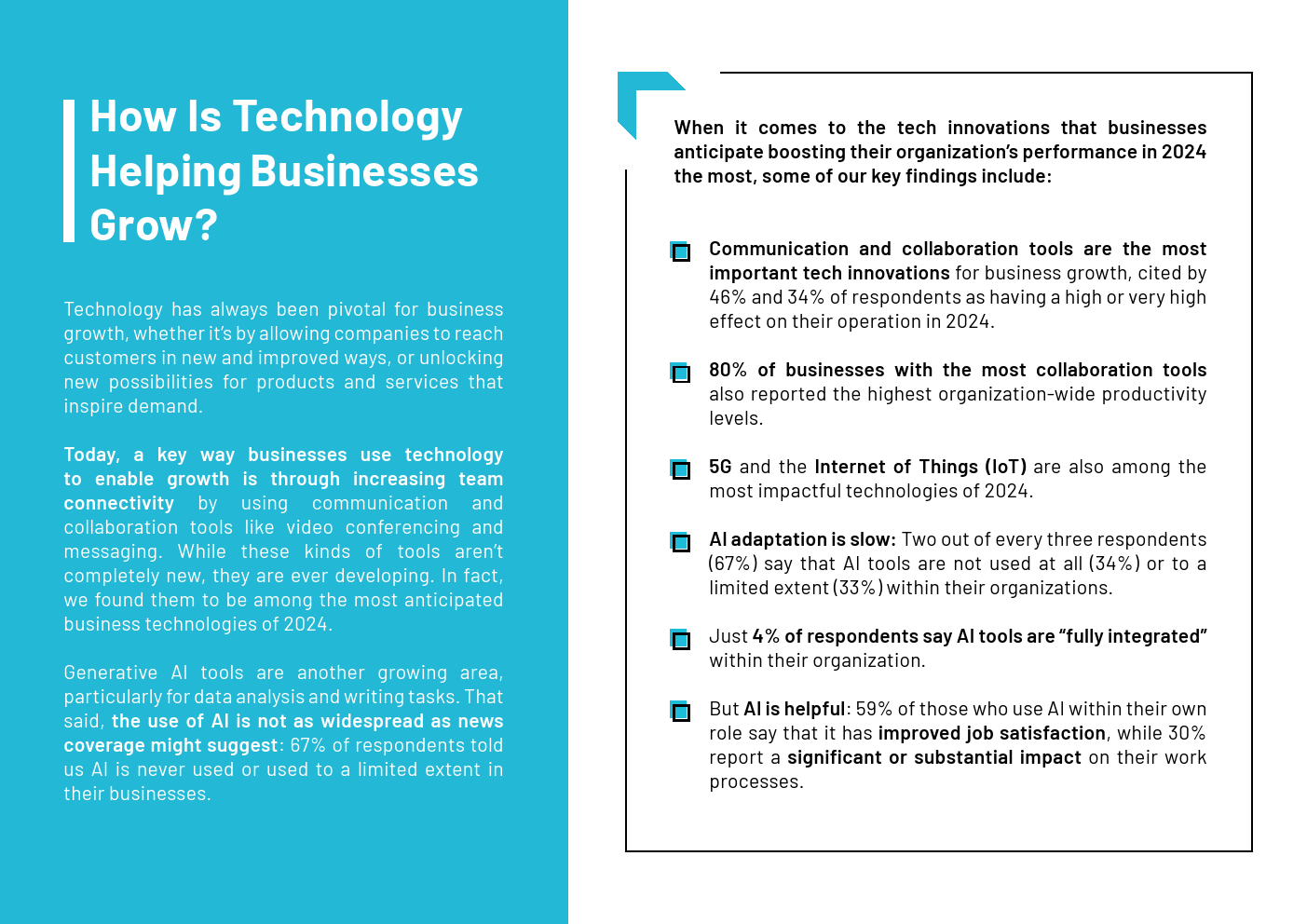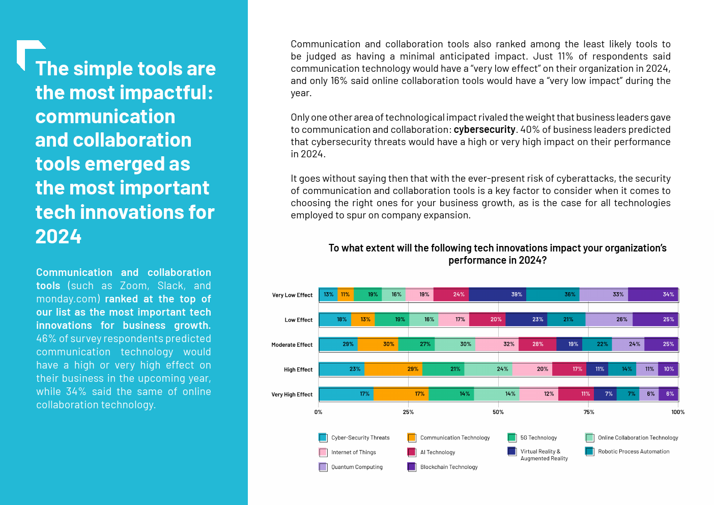 只有另一个行业的技术影响可以与沟通和协作的重要性相媲美:网络安全。40%的商业领袖预测,2024年网络安全威胁将对他们的业绩产生很大或非常大的影响。