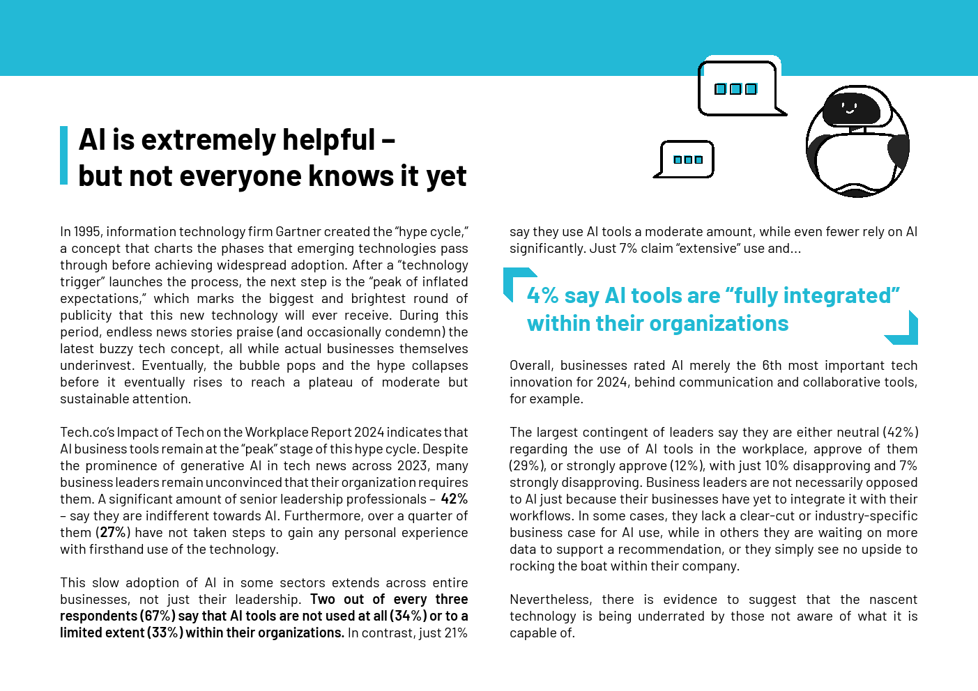 Tech.co发布了新报告“2024年科技对工作场所的影响”,沟通和协作工具是最不可能被列为最小预期影响的工具。只有11%的受访者表示,2024年,通信技术对其组织的影响 “非常低”,只有16%的受访者表示,在线协作工具在这一年的影响将“非常低”。
