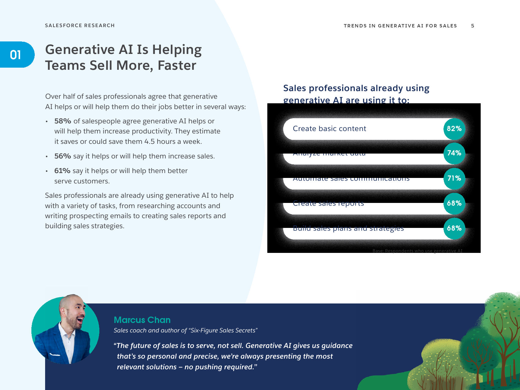 58%的销售人员认为生成式人工智能帮助他们提高生产力,估计每周可以节省4.5个小时。