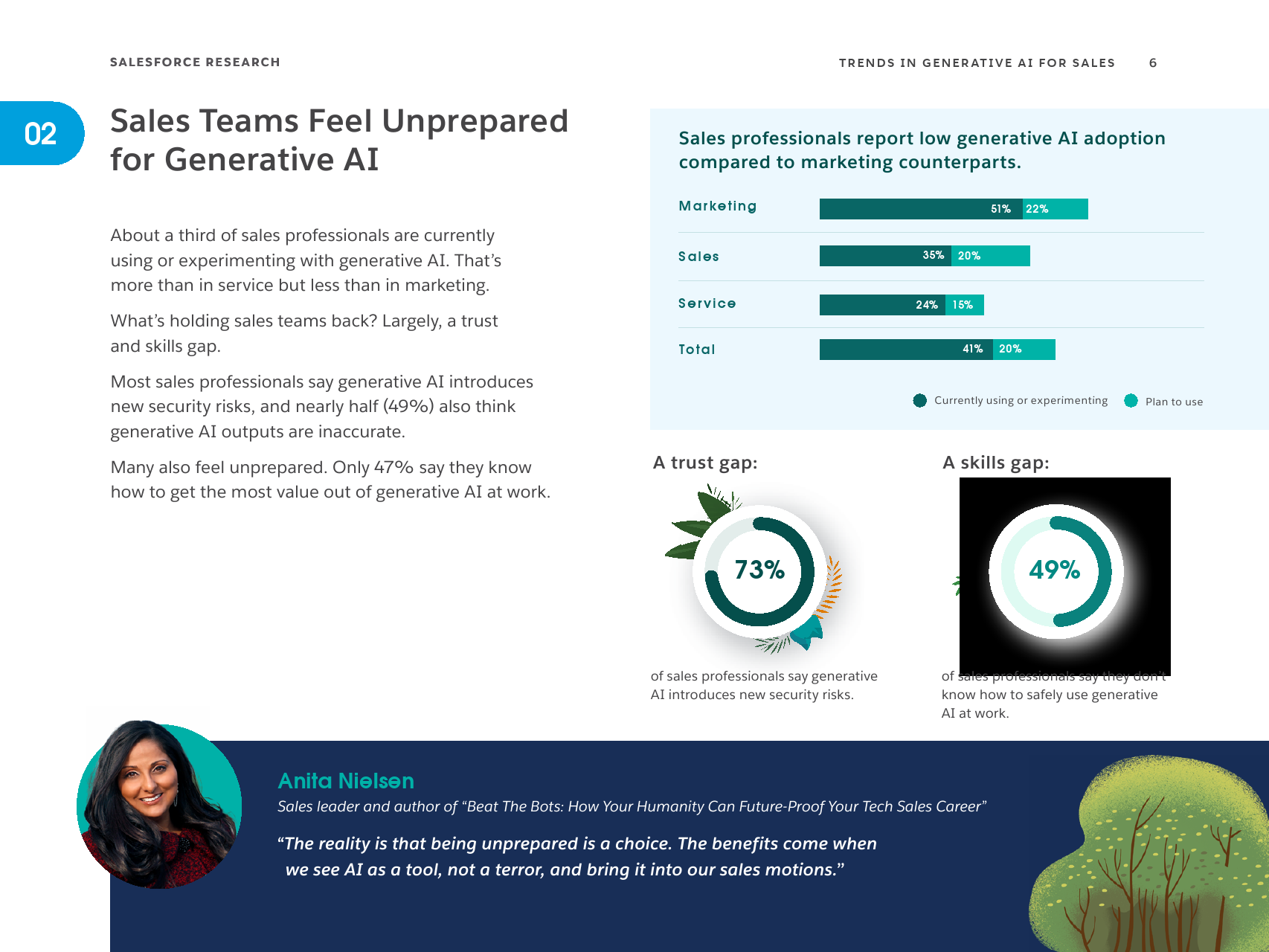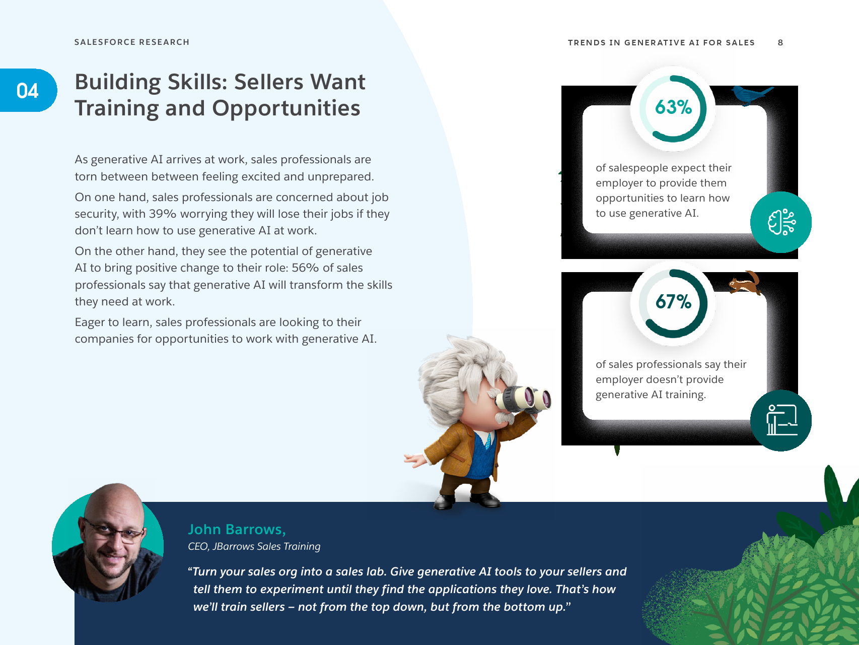 另一方面,他们看到了生成式人工智能给他们的角色带来积极变化的潜力:56%的销售专业人士表示,生成式人工智能将改变他们在工作中所需的技能。