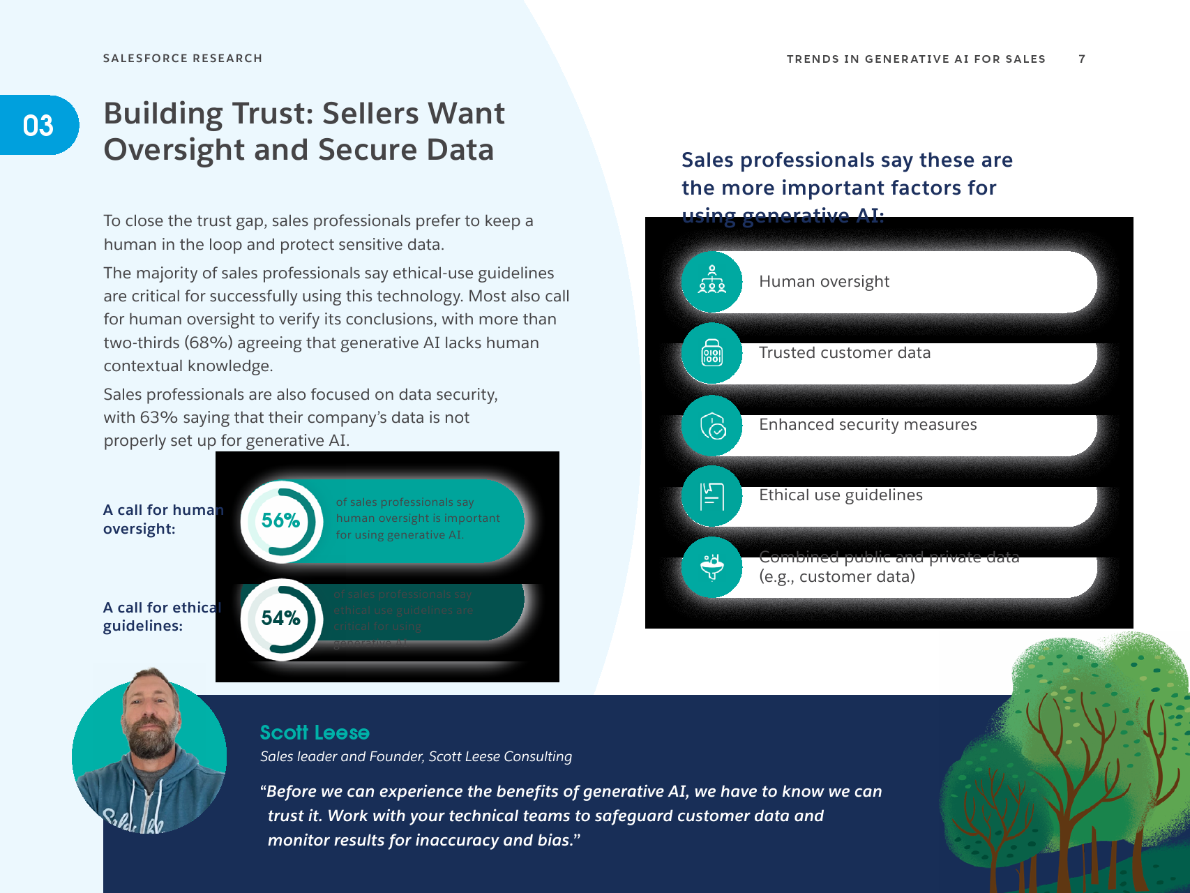 大多数销售专业人士表示,道德使用指南对于成功使用这项技术至关重要。大多数人还呼吁人类监督来验证其结论,68%的人同意生成式人工智能缺乏人类背景知识。