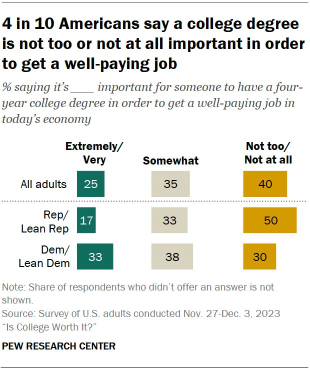 皮尤调查报告称,总共计算下来,29%的美国成年人认为大学学费花得不值。